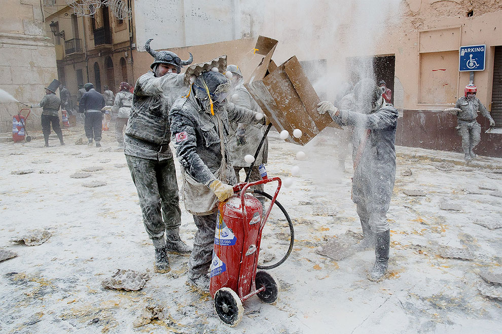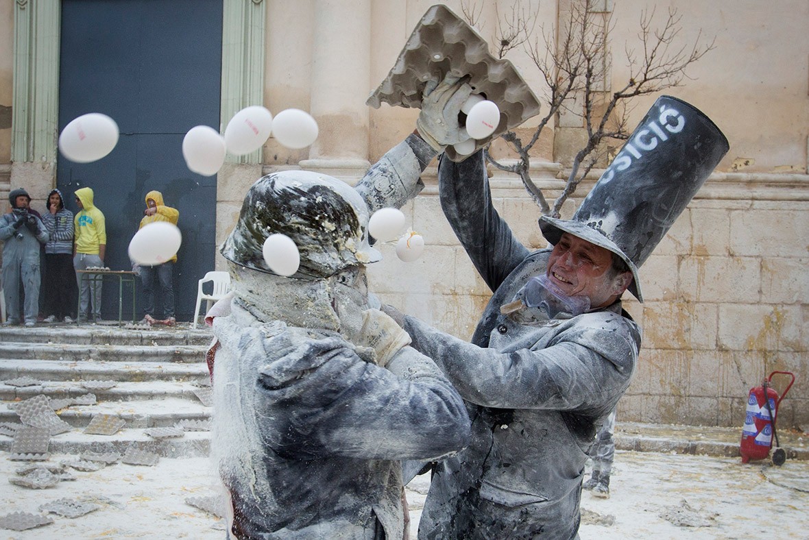 En un pequeño pueblo Buñol Se celebra tradicionalmente en el levante de España cada año. tirando tomates. Esta no es la única tradición inusual en la península ibérica, porque ahí todos 28 de diciembre en la ciudad de Ibi ellos tiran alrededor con harina y huevos, se iluminan petardos e inyectar con extintores.