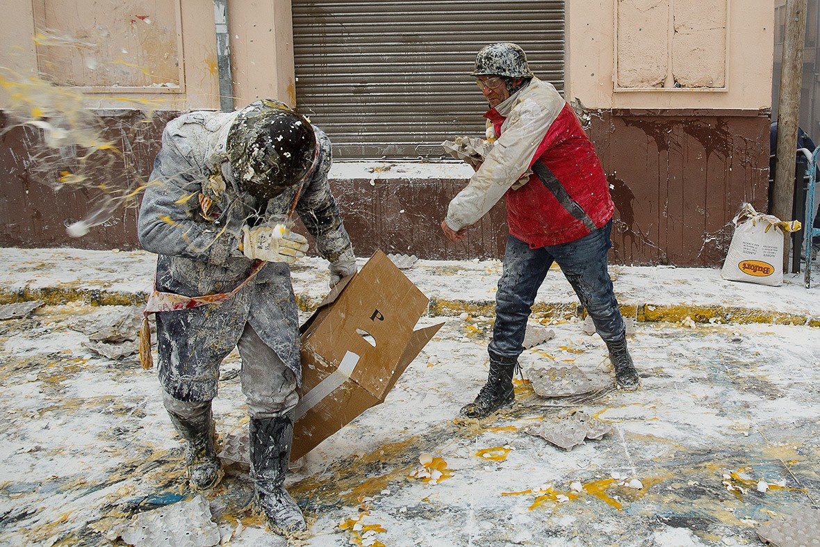 En nuestro país las máscaras tradicionalmente toman el relevo durante la época de carnaval, mientras que en España los uniformes militares toman el relevo el 28 de diciembre. No, no es un golpe de estado. En este día, los habitantes de la localidad española de Ibi son tradicionalmente 'despedidos' con harina, huevos, polvo de extintores y petardos, y antes, a las ocho de la mañana, toman simbólicamente el poder de la localidad. Una tradición de más de 200 años lleva el nombre de Els Enfarinats. Vea escenas increíbles del festival de este año, que una vez más convirtió a la ciudad en un verdadero campo de batalla.