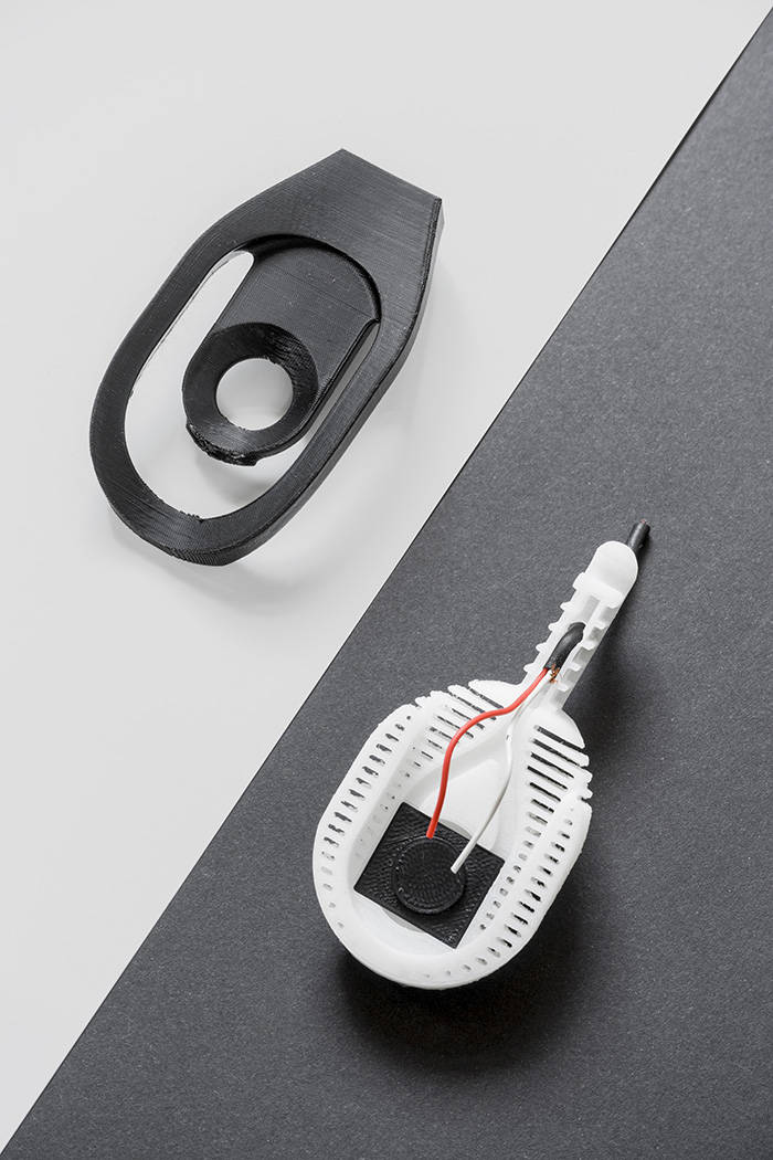Todas las partes de la lámpara. excepto los componentes electrónicos están hechos en el mismo lugar del mismo material sin el uso de herramientas. El hombre es así del proceso de producción en el que fue utilizado polvo de poliamida, prácticamente eliminado.