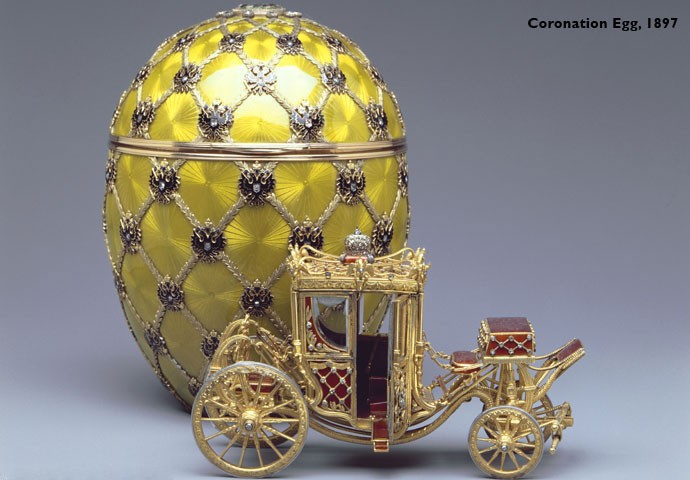 Letos med drugim mineva tudi 130 let od prvega narejenega primerka (Fabergé naj bi jih izdelal 50, 43 jih je preživelo revolucijo), velikonočnega jajca, ki ga je Mariji, svoji ženi, podaril car Aleksander III, sicer oče Nikolaja II, ki je začel nato tradicionalno družinsko obdarovanje, ki se je nadaljevalo vse do bridkega konca carske Rusije. Tudi danes pa je jajce, sploh v časih kot živimo, simbol pretiravanja z razkošjem.