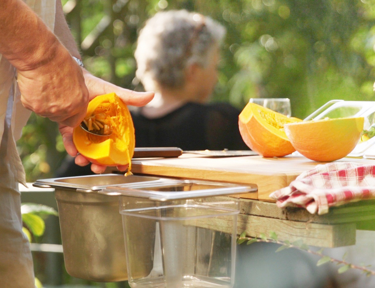 Na eni strani deske lahko izvlečemo dve držali za vpetje posodic, eno namenjeno hrani, drugo odpadkom. Deska je dovolj velika, da jo lahko razdelimo na delovni in odlagalni del. Na drugi strani skriva držala, ki se postavijo pod kotom, namenjena držanju kuharske knjige, tablice iPad in posodic za sestavine, do katerih imamo posledično lažji dostop. Osnovi set estarás tú en Kickstarter olajšal za 119 euros.