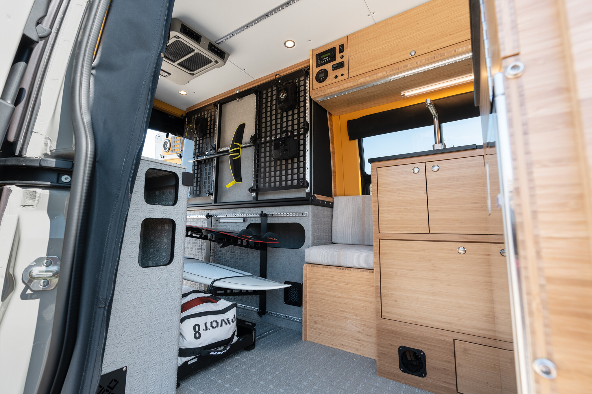 Combinado con un sistema de aislamiento avanzado y una caldera diésel Espar Airtronic que proporciona aire acondicionado y agua caliente en la cabina, Slim Chance es una verdadera casa móvil que le permite vivir cómoda e independientemente, ya sea que esté estacionado junto a la orilla del lago o en el medio del bosque. En el mundo de las aventuras fuera de la red, Slim Chance está realmente en una liga propia.