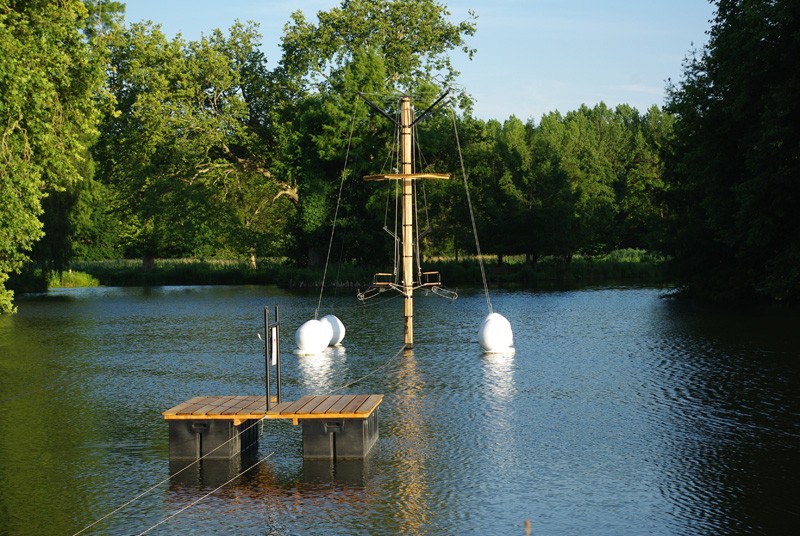 en medio de la calma del río La Junine en la ciudad de Essonne, Francia, recientemente creció torre de madera Hablador. torre de 6 metros en el cabrestante, que se encuentra en las inmediaciones de la casa solariega Castillo de Chamarande, es un atractivo muy especial, porque ofrece al visitante conocer la naturaleza desde una perspectiva que aún no conoce, levantándolo por encima del nivel del río y dejándolo flotar en el aire.