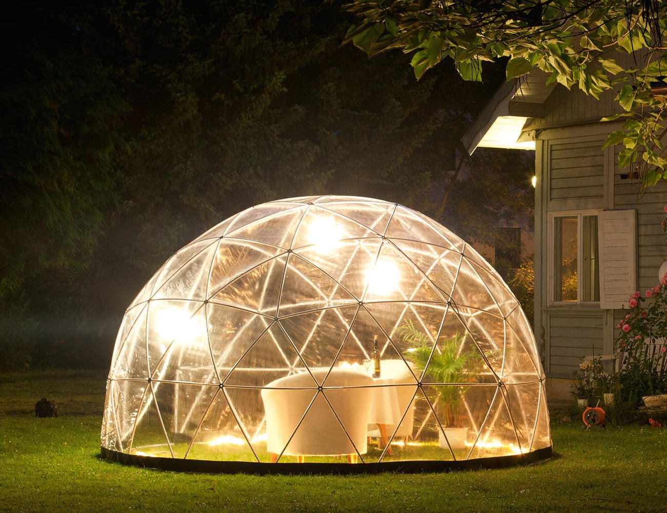 Iglú de cúpula de jardín es un iglú de jardín gracias al cual puedes glamping justo en tu patio trasero. lo distingue bonito diseño, cual es también Amigable con el medio ambiente. El refugio está hecho de materiales no corrosivos. P46 y CLORURO DE POLIVINILO, que puede ser completamente reciclado.