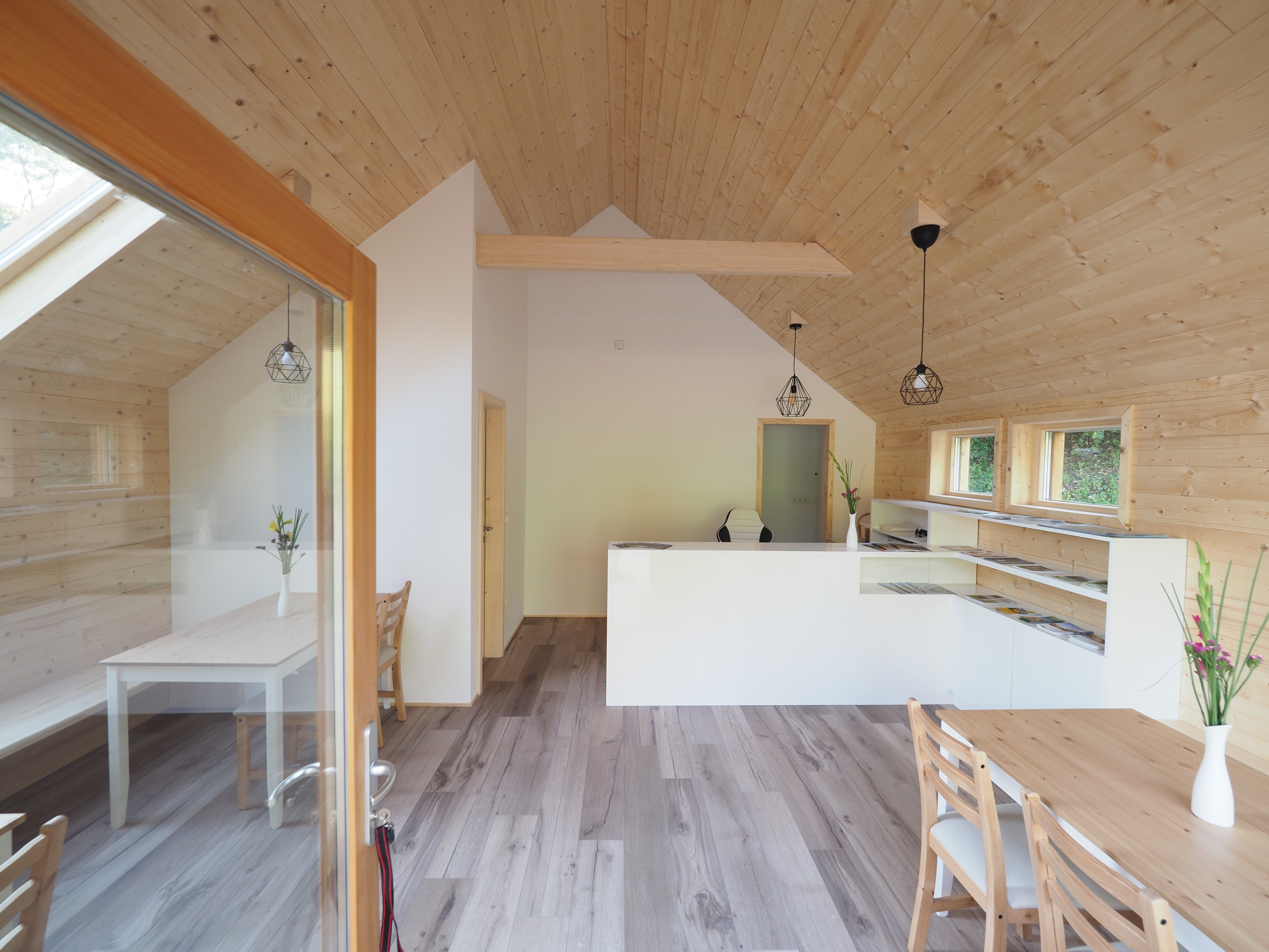 Casas de madera Están construidas con madera y otros materiales naturales, amuebladas en un estilo minimalista, con grandes ventanales panorámicos que ofrecen una vista del paisaje circundante. Ellos son calentado y aislado y por lo tanto adecuado para una estancia durante todo el año. Aceptan hasta 4 personas, están en eso 2 camas francesas, rincón de lectura con ventana grande, cocineta con heladera, área central con comedor y baño. Si es necesario, también puede solicitar una trona y una cuna adicional. Todas las cabañas están amuebladas. con señal wifi gratis. Actualmente está publicado en todas las casas y traducido al inglés. leyenda local o un cuento de hadas, después de lo cual tiene casa su nombre. También decoran cada casa según tres ilustraciones relacionadas con el cuento de hadas.