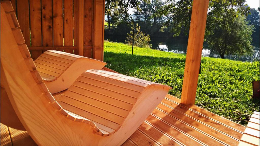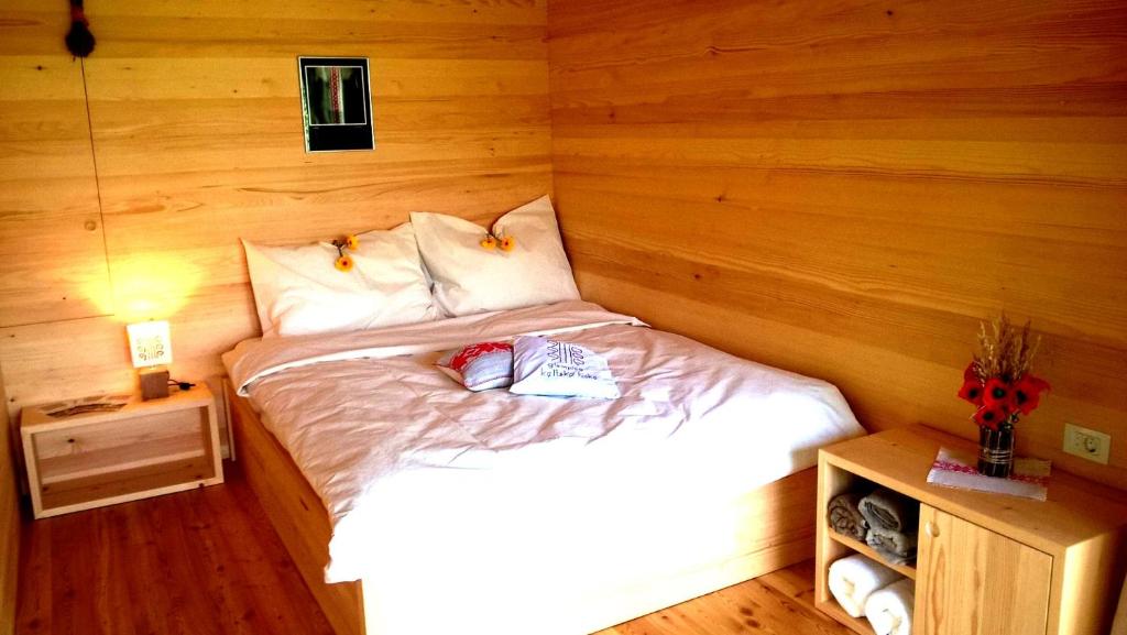casas celtas, ubicado en Camp Podzemelj, están hechos de materiales naturales, madera en bruto y tradicionalmente cubiertos con paja. El aspecto rústico exterior y el cuidado interior de las casas ofrecen al huésped todo el confort necesario. Las cabañas se encuentran en una ubicación ideal de una bahía cubierta de hierba en el centro del campamento, por lo que puede mirar el río Kolpa desde su cama, o incluso desayunar allí con vista al amanecer y la hermosa naturaleza.