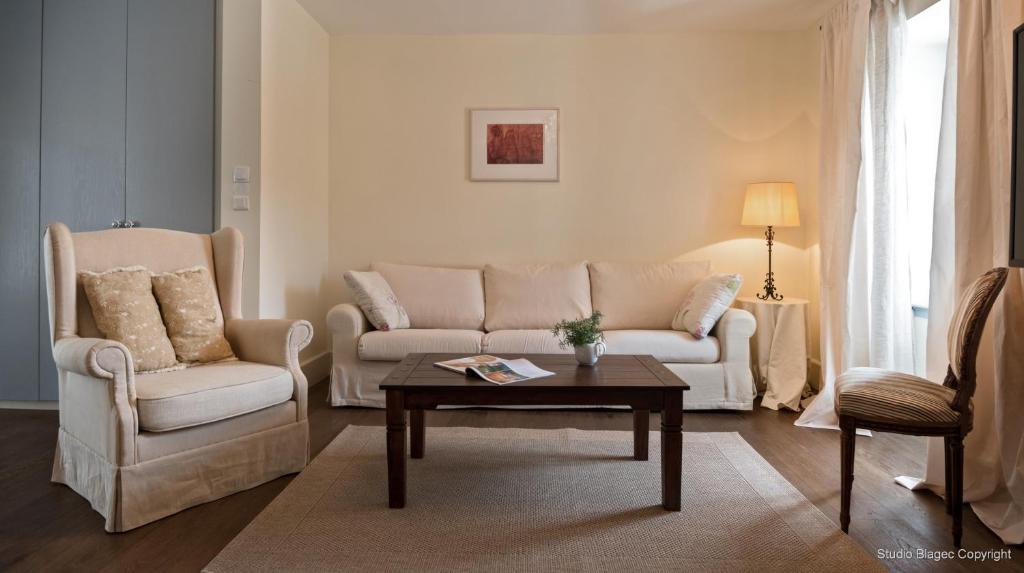 Aunque la tradición y la historia se pueden sentir en cada rincón, el servicio superior y altamente personal cumple con todos los estándares de comodidad y unas vacaciones modernas de cinco estrellas. Todos los apartamentos tienen aire acondicionado y están equipados con todo lo que necesita un viajero moderno, y para una experiencia completa y lujosa de unas vacaciones al estilo mediterráneo, también hay piscina climatizada, sauna, baño de vapor, terrazas y un rico jardín mediterráneo.