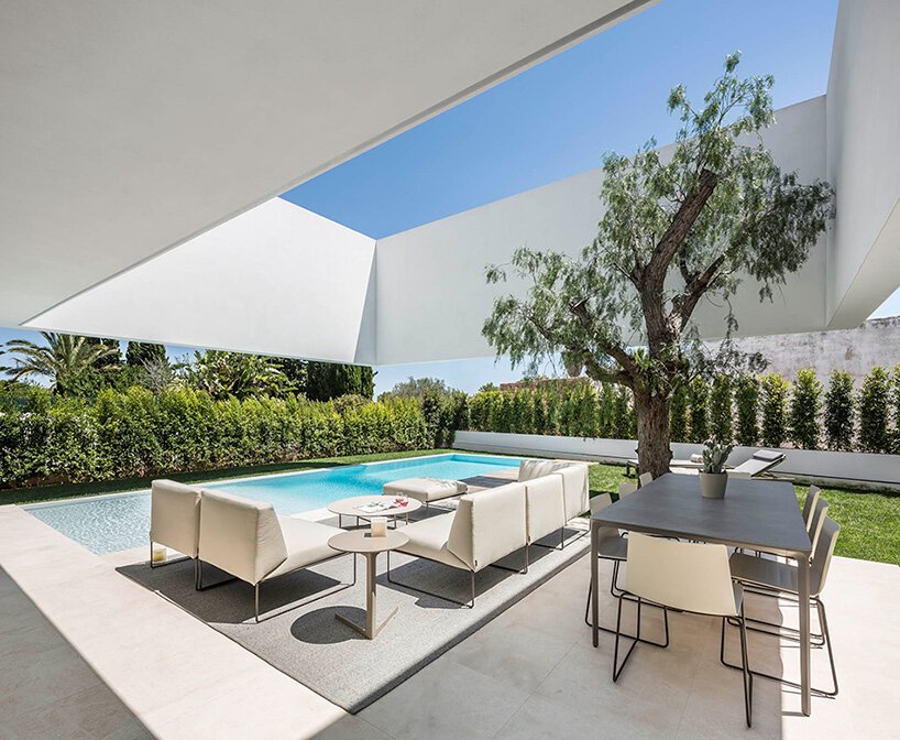 Los arquitectos quitaron partes de la estructura para crear terrazas en diferentes niveles. Los espacios exteriores, propios de la arquitectura y estilo de vida mediterráneos, forman una zona vegetal de tres árboles. Cipreses, olivos y sauces dan un carácter característico al espacio exterior, así como a los espacios interiores que los rodean.