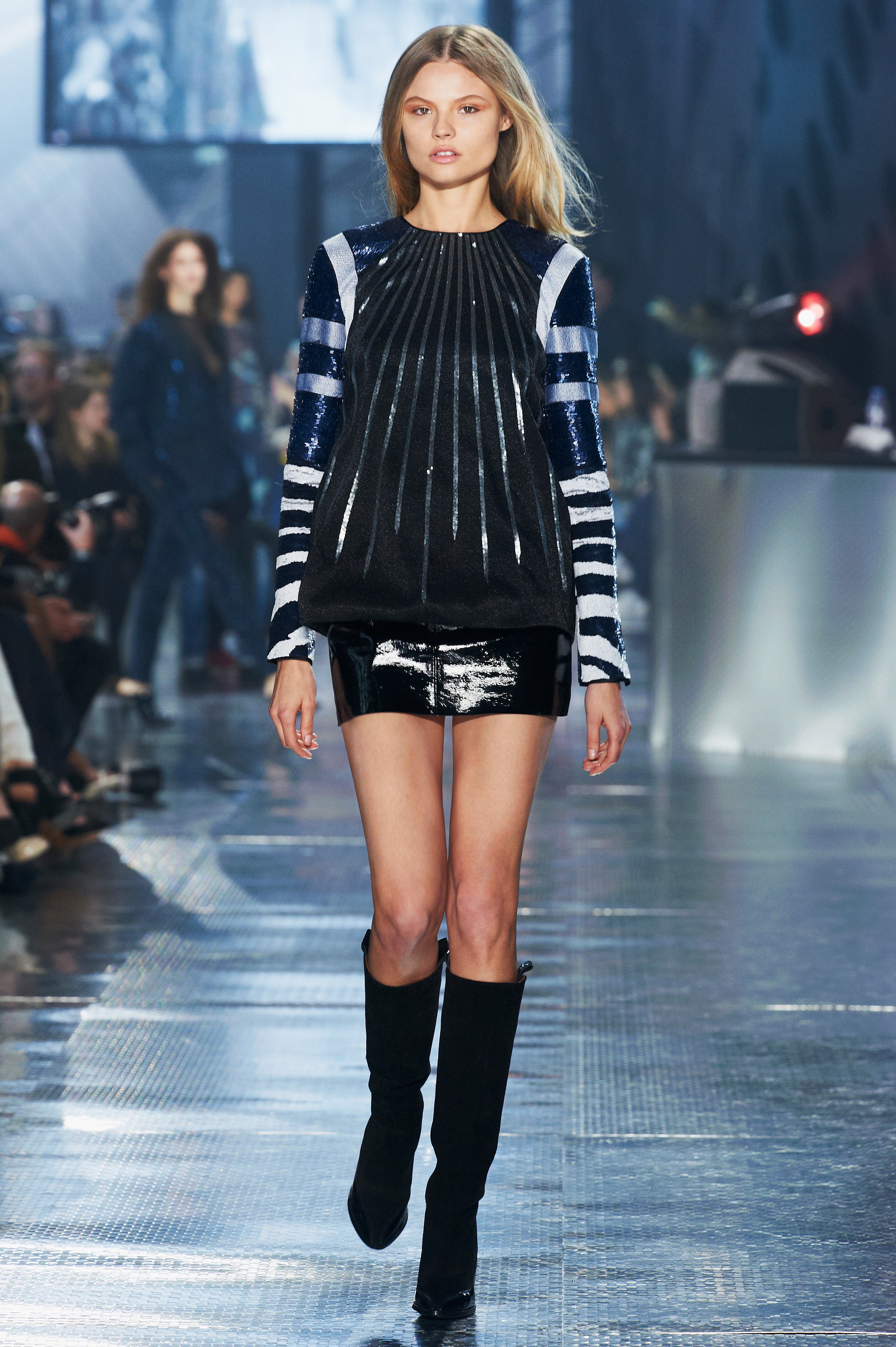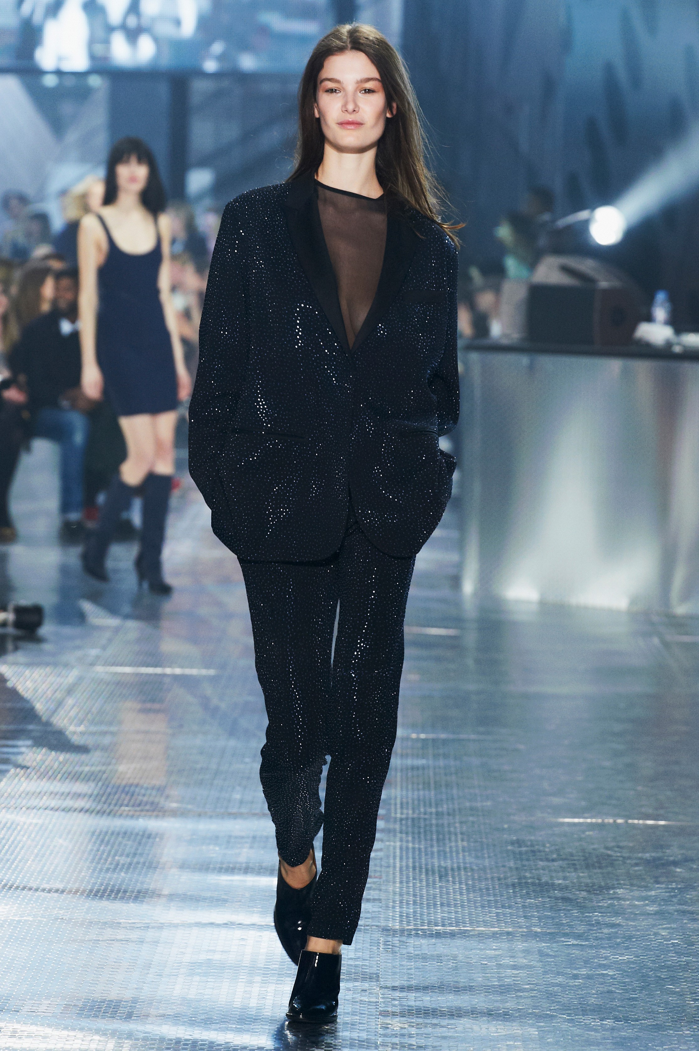 Revista Estudio H&M se llevó a cabo en Gran Palacio ante 600 invitados, entre los que se encontraban Miranda Kerr, Jessica Alba y Solange Knowlesy online en compañía de un experto en moda de la televisión francesa Señorita Agnès visto por audiencias de todo el mundo. Para el desfile de moda, el histórico Grand Palais se transformó en un paisaje urbano con líneas arquitectónicas gráficas y vallas publicitarias en todo el espacio. Al principio de la sala había un escenario donde la próxima estrella francesa hollysiz Actuado en vivo durante el desfile de moda.