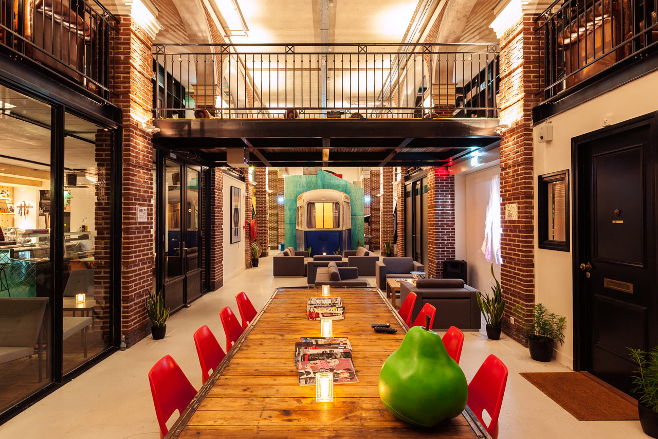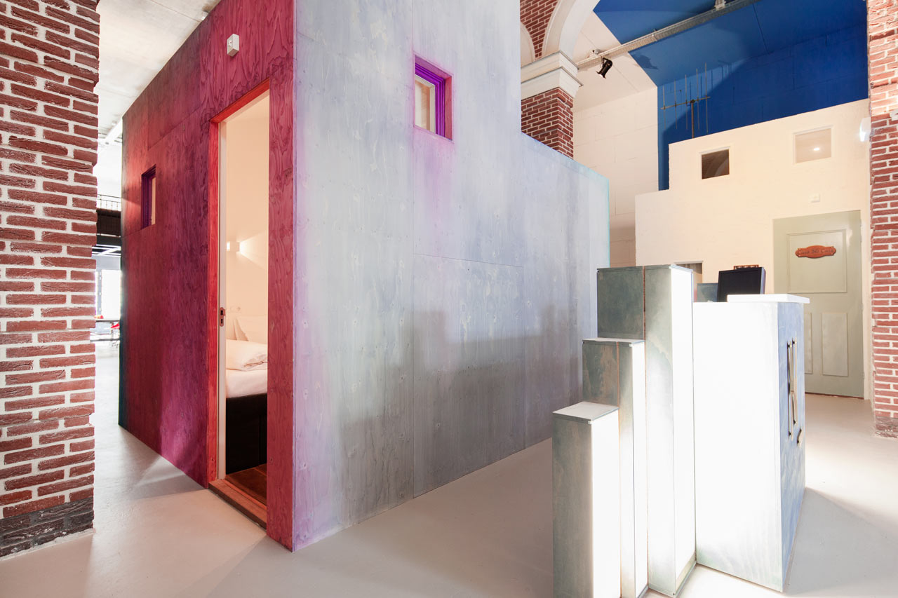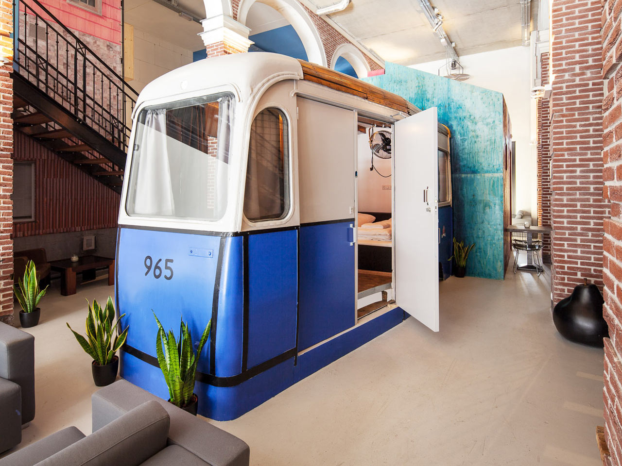 Hotel no hotel No es solo un hotel, porque al visitarlo, puede olvidarse de la estructura hotelera habitual: un vestíbulo e innumerables pasillos que conducen a habitaciones con un estilo completamente idéntico. No, el Hotel Not Hotel de Ámsterdam sorprende a sus huéspedes con cada habitación individualmente. La mayoría de las habitaciones han sido amuebladas por Colaboración-O, un grupo de jóvenes diseñadores, y también emprendieron la renovación de uno Arno Coenen e IRIS. Todo el hotel funciona como una enorme sala de estar, equipada con cómodos sillones y sofás, que conecta interesantes habitaciones con diversas temáticas. Incluso se puede dormir en una vieja caravana aparcada en medio de la zona central. El hotel cuenta con 50 camas en 23 habitaciones, donde se puede dormir a un precio muy asequible.