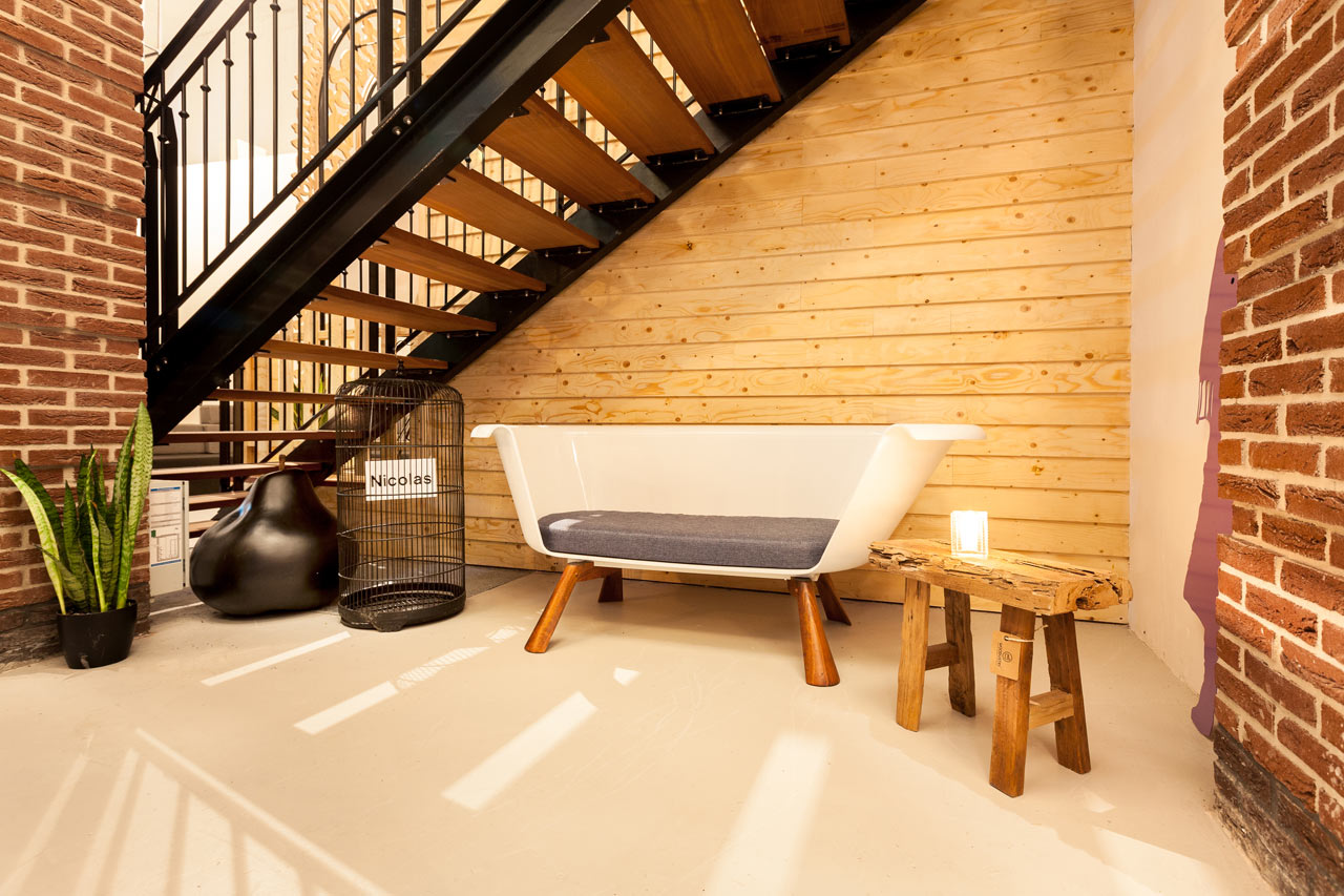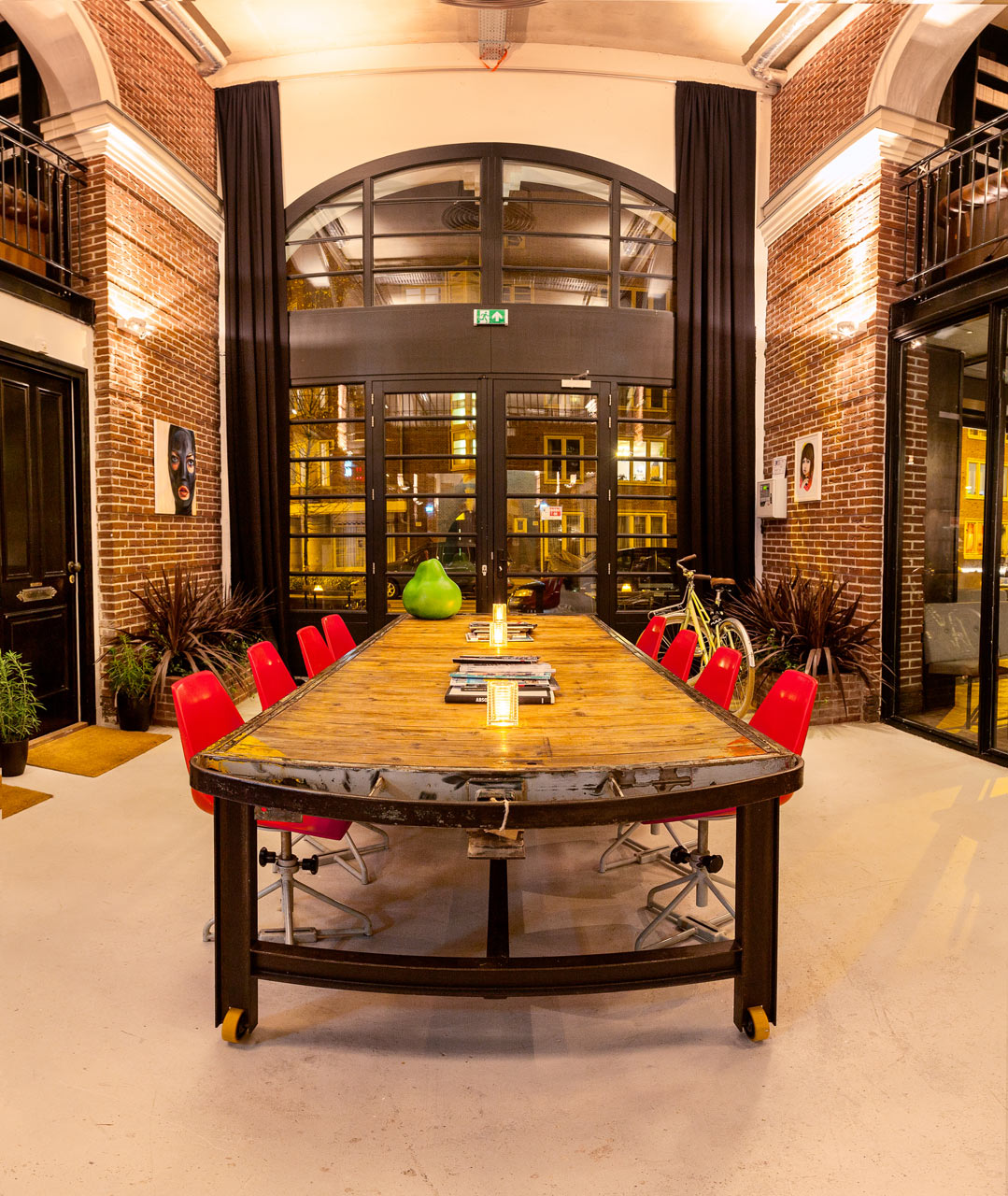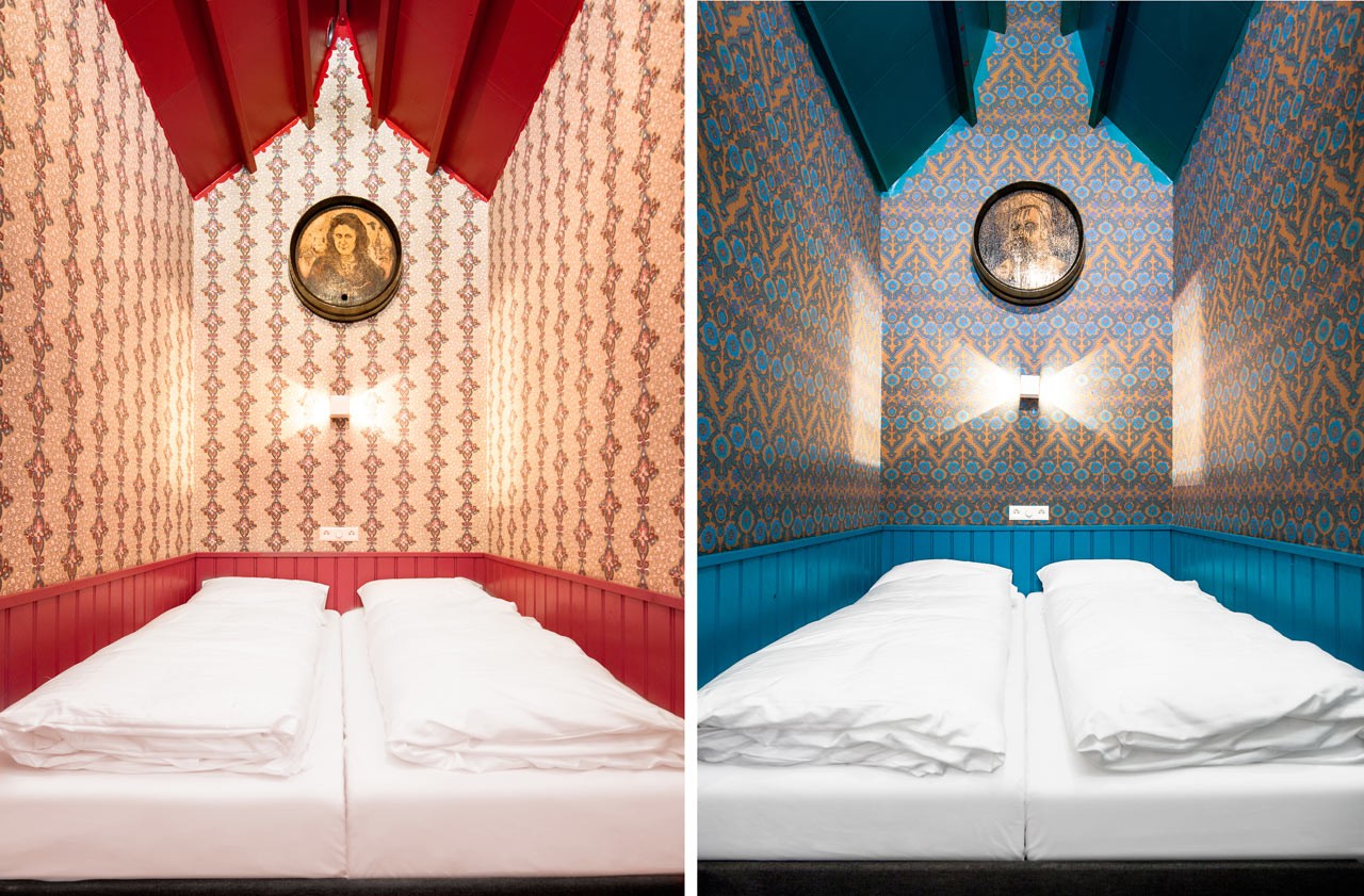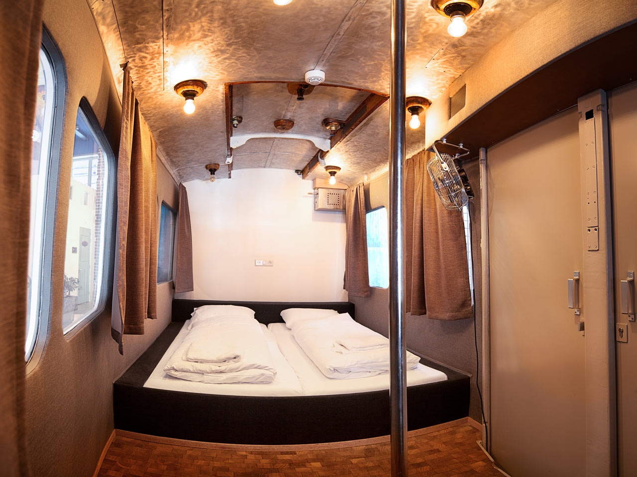 Hotel no hotel No es solo un hotel, porque al visitarlo, puede olvidarse de la estructura hotelera habitual: un vestíbulo e innumerables pasillos que conducen a habitaciones con un estilo completamente idéntico. No, el Hotel Not Hotel de Ámsterdam sorprende a sus huéspedes con cada habitación individualmente. La mayoría de las habitaciones han sido amuebladas por Colaboración-O, un grupo de jóvenes diseñadores, y también emprendieron la renovación de uno Arno Coenen e IRIS. Todo el hotel funciona como una enorme sala de estar, equipada con cómodos sillones y sofás, que conecta interesantes habitaciones con diversas temáticas. Incluso se puede dormir en una vieja caravana aparcada en medio de la zona central. El hotel cuenta con 50 camas en 23 habitaciones, donde se puede dormir a un precio muy asequible.