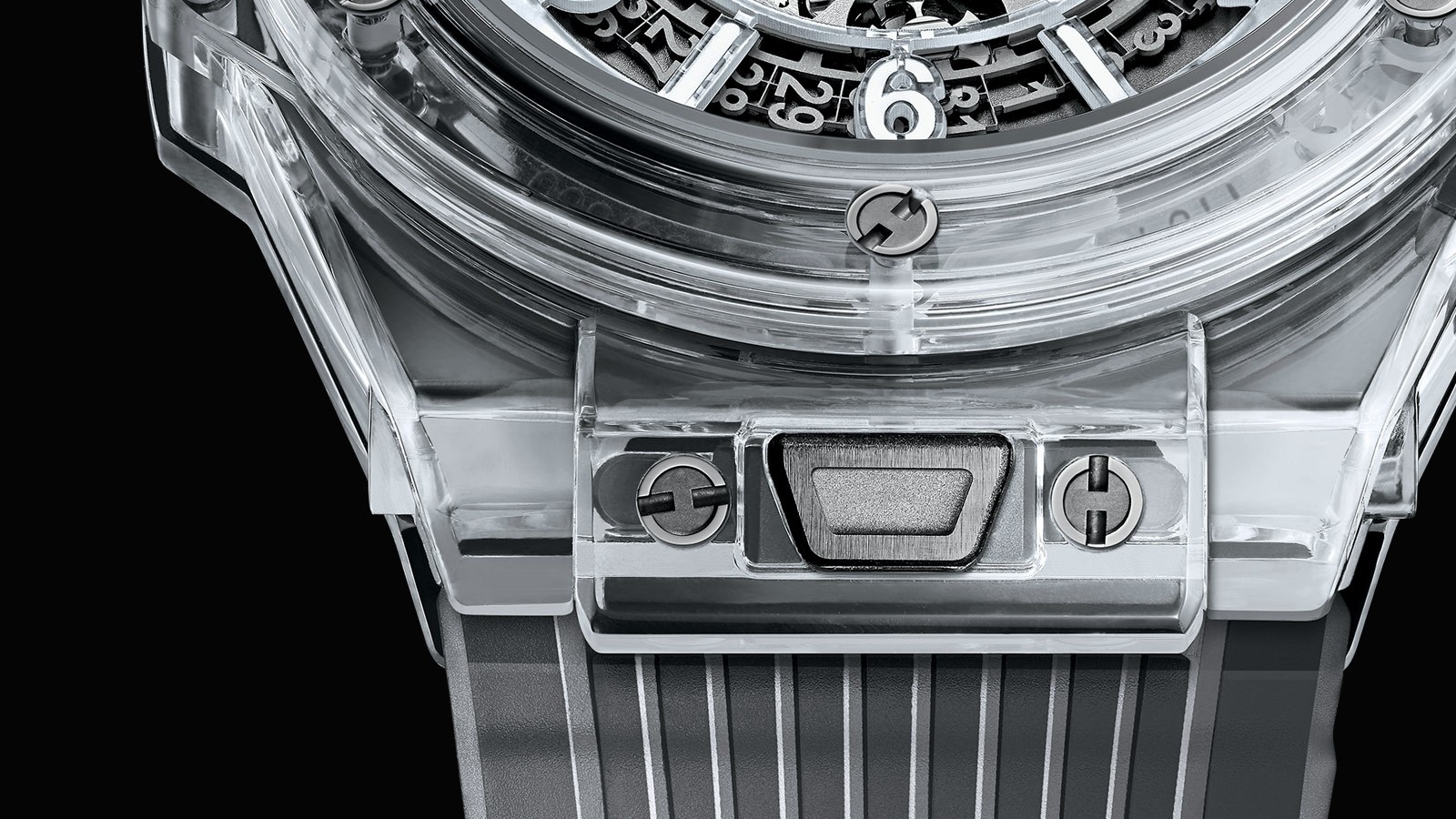 Ročna ura Hublot Big Bang Unico Sapphire je izklesana iz safirja s postopkom obdelave, ki ne uniči njegovega edinstvenega karakterja. Iz safirja je izdelana skoraj v celoti, zgolj mehanizem ne ter vijaki in predel pri paščku (ta je de silicona), ki so de titanio.