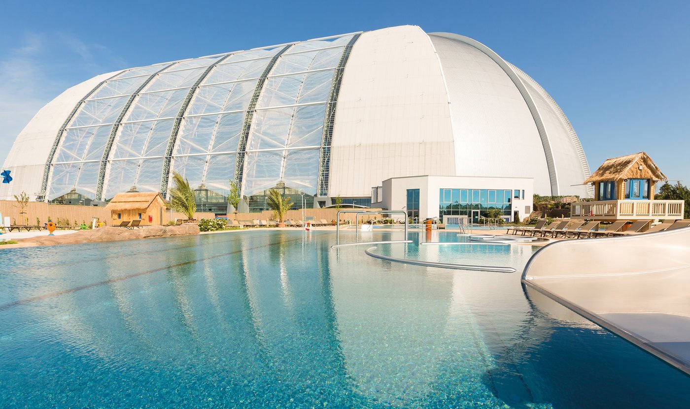 Solo 60 kilómetros de Berlín se encuentra un enorme salón que es s 66.000 m² área es en realidad uno de los más grandes del mundo. espacio cerrado con mar artificial, Islas tropicales, bosques tropicales y animales, que se mueven libremente. Una selva tropical se encuentra en la superficie 10.000 m² y ofertas alrededor 50.000 plantas 600 especies diferentes. Podrás reunirte allí. llamas, son, pavos reales o faisanes. El agua de las piscinas tiene todo el tiempo 31 °C, para que puedas bañarte en la piscina exterior todos los días del año. Uno de los mayores atractivos sin duda. el tobogán más alto de Alemania, porque En Altura solo mide 27 metros. Bueno, básicamente se trata de la torre. 4 diapositivas. Además 4000 m² de áreas de juego para los más jóvenes también puede encontrar allí un centro comercial, gimnasio, mini golf, campamento de tiendas de campaña y varios bares y restaurantes, la mayoría ubicados en Tropska vas. Para divertirte, puedes elevarte 60 m sobre el bosque y el mar con un globo y observarlos a vista de pájaro.