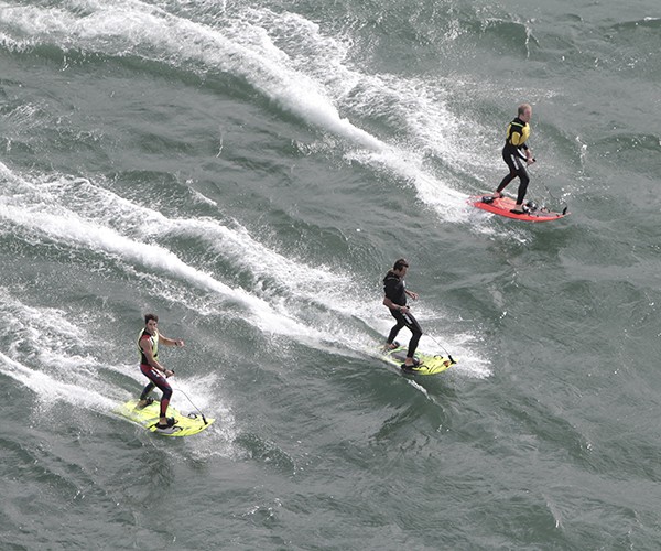 JetSurf se desliza sobre la superficie del agua a unos buenos 55 km/h, algo inaudito en tierra, pero en el agua es realmente extraordinario. Un juguete para hombres de verdad que no solo quieren tumbarse en la playa en verano, sino que necesitan la compañía de un gran aparato.