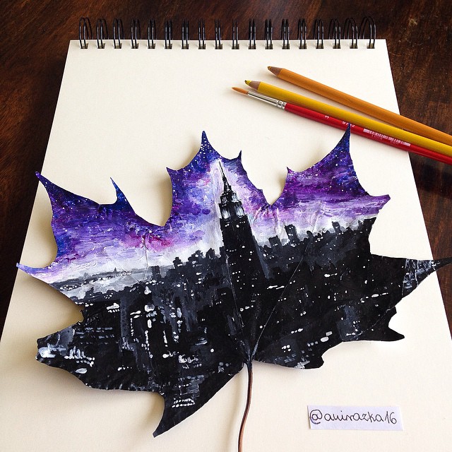 Cuando las hojas empiezan a caer en otoño, el artista polaco Joanna Wirażka asegúrese de que no se desperdicien. Hojas caídas es decir, utiliza como un lienzo de pintura. El follaje otoñal, que es una obra de arte única en sí mismo, con pinturas acrílicas se transforma en hermosas creaciones que le quitan en promedio tres horas tiempo.