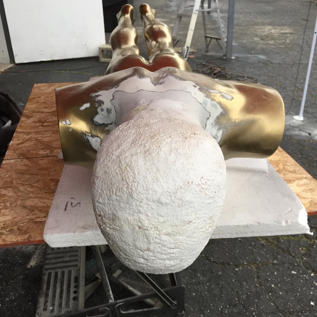 ”Kanye je briljanten pisec in producent, a ni bog, v kar ga povzdigujemo,” je dejal Plastic Jesus. ”Poglejte, kaj se mu je zgodilo …” Umetnik je zadnje obdobje s svojimi deli puščice usmerjal proti Donald Trump, ki ga je Kanye nekaj časa celo javno podpiral, vsako leto pa pred oskarji izdela kip, ki je aktualna kritika Hoolywooda. False Idol je na ogled na križišču ulice Hollywood Boulevard in La Brea Avenue (8801 Sunset Boulevard, LA).