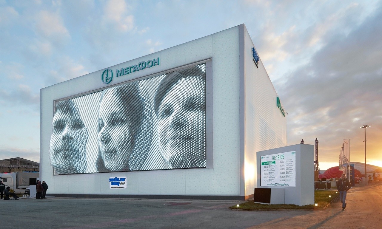Kar 2.000 kvadratnih metrov veliko kocko, načrtovano s strani ruskega telekomunikacijskega podjetja Megafon, krasi prostrana kinetična plošča, ki s pomočjo bližnje foto kabine digitalno skenirane fotografije pretvori v 3D obraze obiskovalcev. Portrete v slogu priljubnega trenda “selfiejev” torej nemudoma prelevi v epične arhitekturne skulpture.