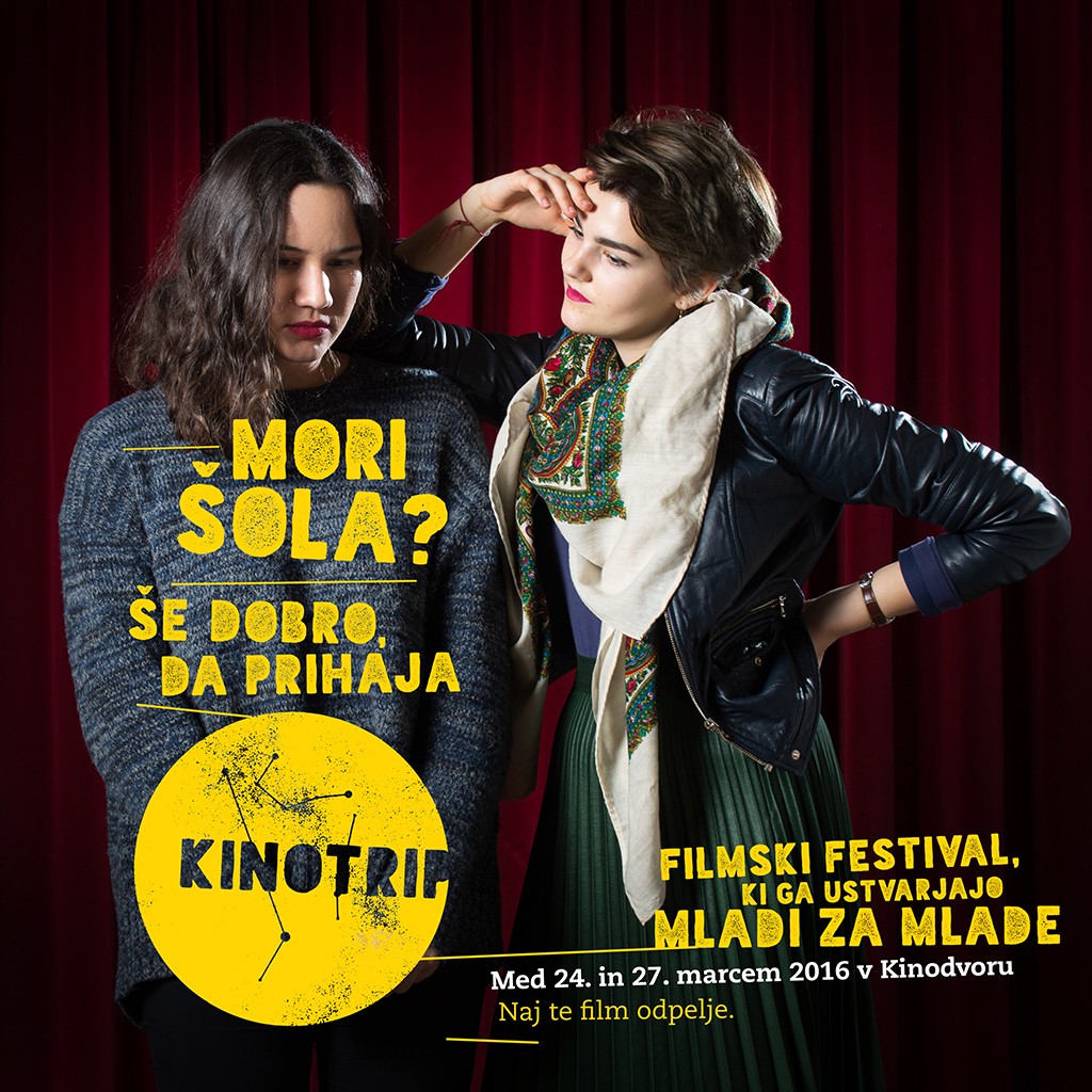 Od mladih za mlade. Od novembra se v Sala de cine medi vsebina prvega mednarodnega filmskega festivala Kinotrip, festivala, ki so ga ustvarili mladi za mlade. Štiridnevni dogodek bo potekal med 24. in 27. marcem 2016, ko se bodo na filmskem platnu Kinodvora zvrstili animirani in dokumentarni film, grozljivka, filmska klasika in za poobedek še poslastica svetovne kinematografije. Poleg projekcij se bomo lahko udeležili pogovorov in druženj z gosti z domače in tuje scene ter delavnic (videa in kratkega filma, snemanja filmskih podkastov, VJ-anja z DIY-mikroskopom). Celoten (in še podrobnejši) program festivala Kinotrip bo 7. marca objavljen na spletni strani kinodvor.org/kinotrip.