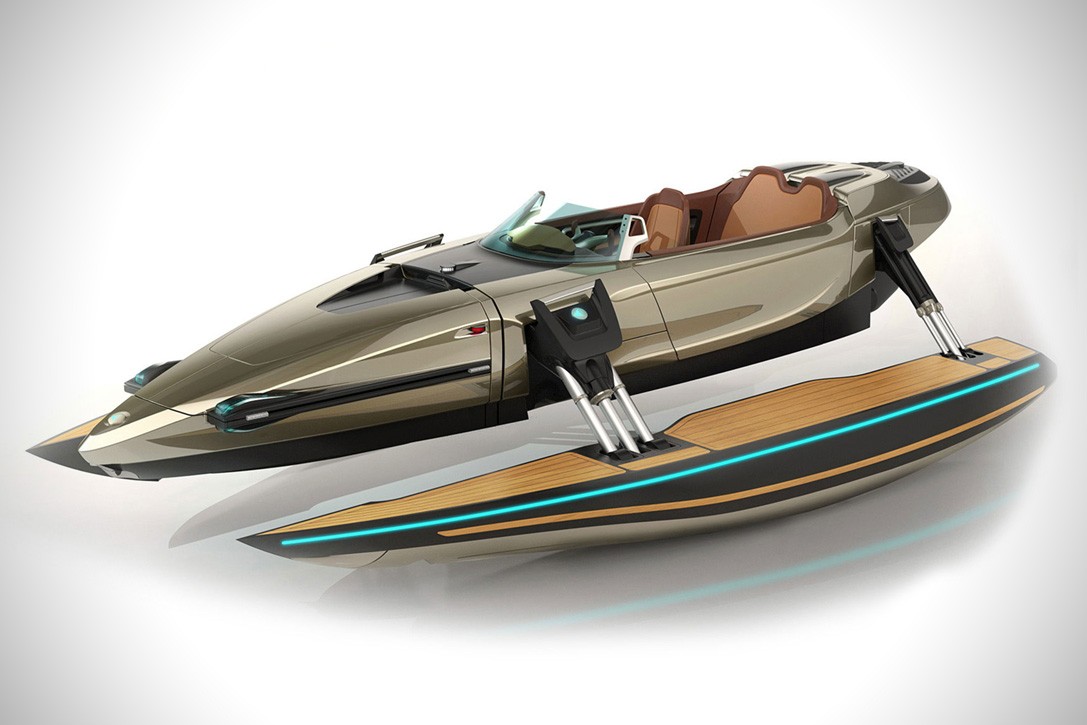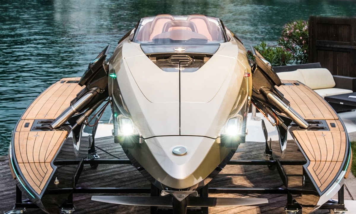 Timonel viene de Salsburgo, alrededor de la cual encontramos un gran número de lagos, sobre los que podrían probarlo a fondo. Solo necesitas pulsar un botón y el Kormaran K7 se convierte en uno de ellos cuatro formas de uso. Cuando tiene sus "esquís" de agua cerca del casco, puede usarse como una lancha rápida normal o como una moto de agua un poco más grande. Cuando extendemos los esquís, navegamos como en un catamarán, y cuando queremos velocidades aún más altas, volvemos a presionar el botón y el K7 ya se transforma en un hidroala. Si solo queremos descansar y disfrutar del sol, convertimos a Kormarana en solárium de lujo. Tiene una superficie cubierta con teca especial reforzada con fibras de carbono.
