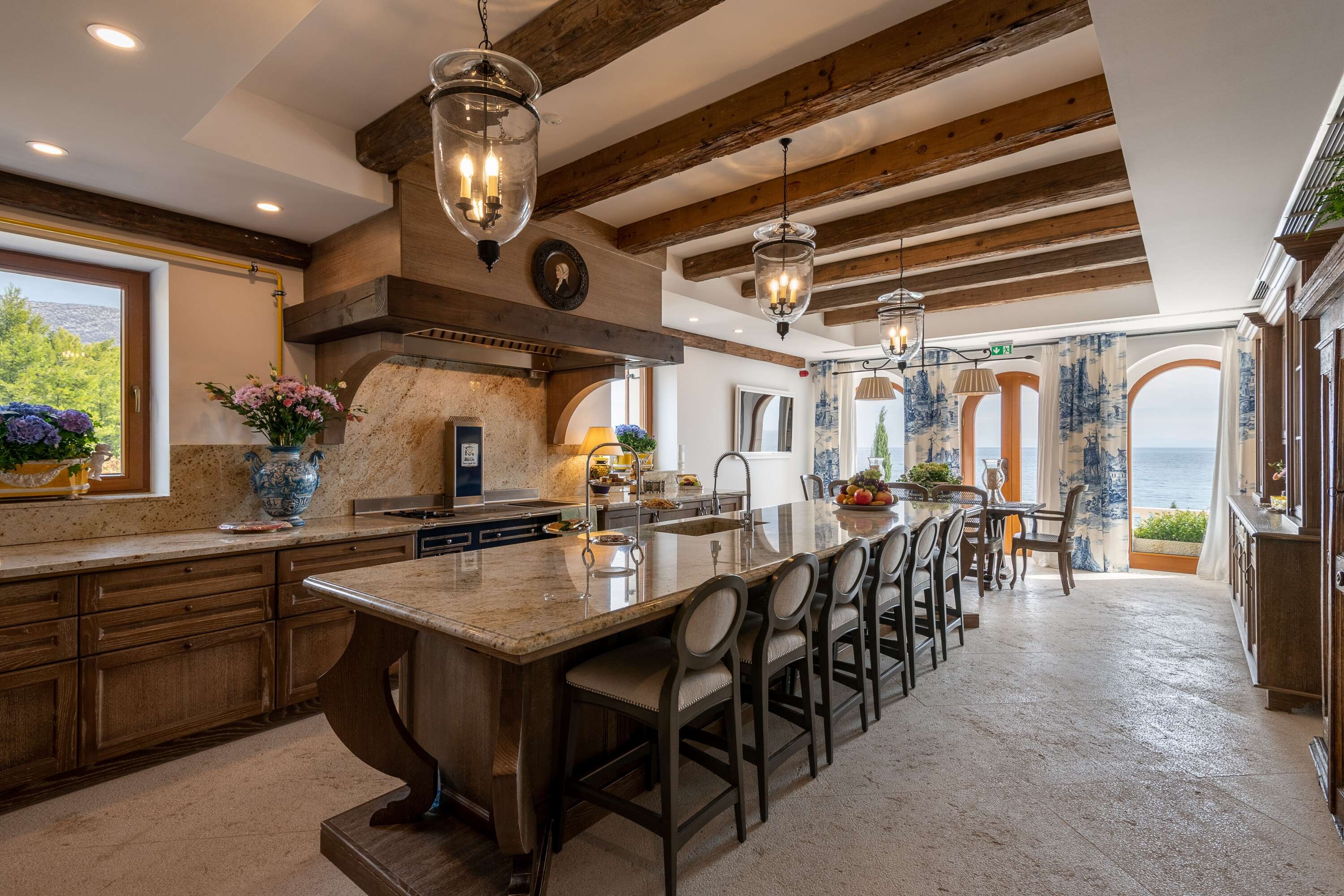 Nuestra primera elección es una villa de lujo, que los propietarios han transformado hábilmente en un hotel de cinco estrellas. La villa está ubicada en una gran finca de viñedos, justo al lado del mar, con una hermosa vista de las islas circundantes y el mar abierto. Al tratarse de un alojamiento del más alto nivel, se presta especial atención a la comodidad y los requisitos de cada huésped, como si estuviera en una casa privada de lujo donde se siente verdaderamente como en casa.