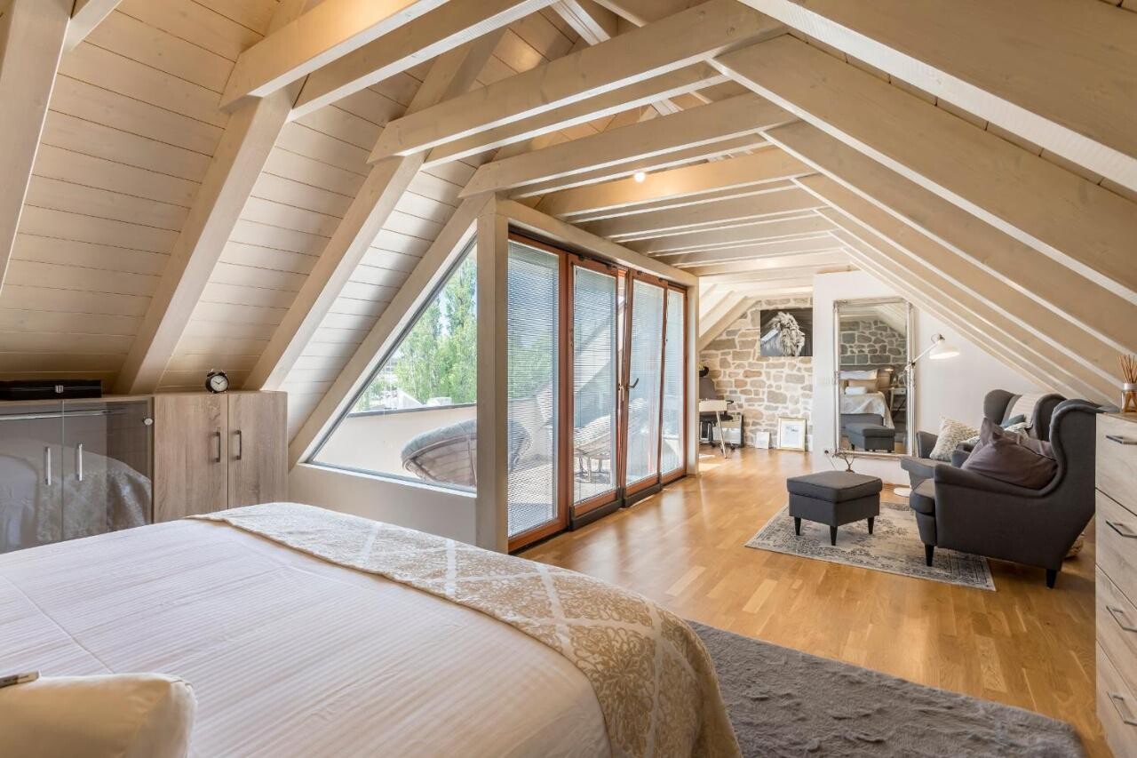 La lista de las villas con piscina privada más bonitas de Croacia no estaría completa si no echáramos un vistazo también al interior. Villa Pačetina es un encantador refugio rural ubicado en la tranquila campiña cerca de Zagreb. No muy lejos de la frontera con Eslovenia. Un tranquilo alojamiento rural en plena naturaleza ofrece la combinación perfecta de paz y lujo. Ubicada en medio de una exuberante vegetación y colinas, esta idílica villa es un refugio para aquellos que buscan un escape tranquilo del ajetreo y el bullicio de la vida de la ciudad.