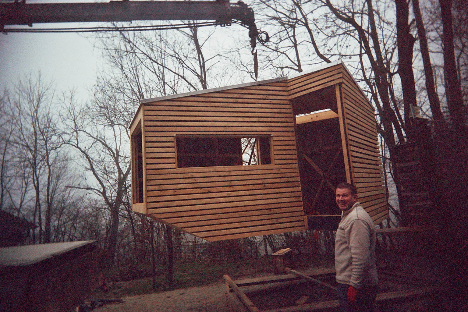 Hiška na drevesu je umeščena na rob podolgovate parcele družinske hiše blizu Lukovice, kjer je strmo zaraščeno pobočje. Ker tam ni bilo dovolj dreves, ki bi dajala dovolj opore za hiško, ta stoji na samostojni konstrukciji in je tako neodvisna od dreves.