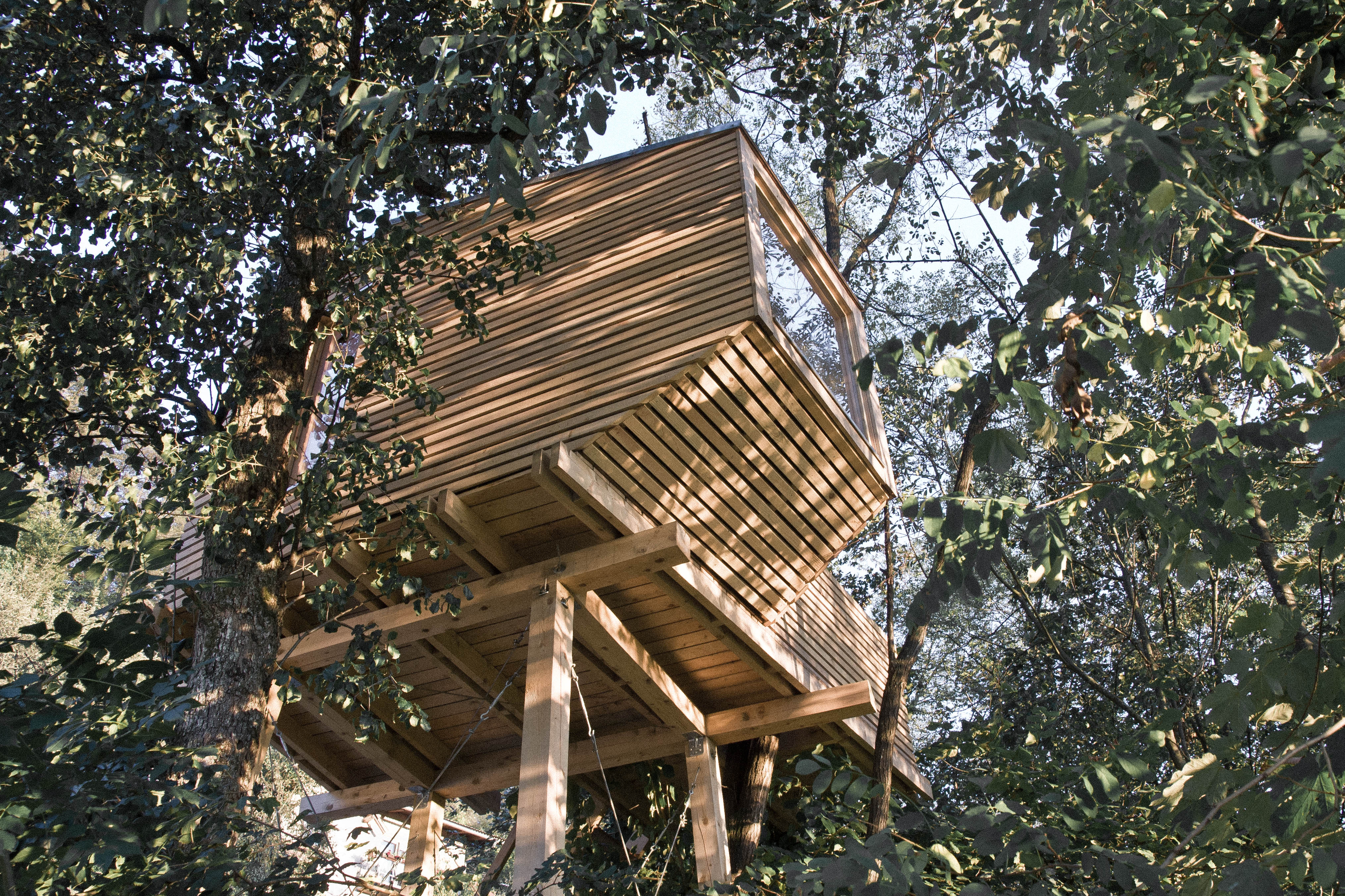 La casa del árbol, situada cerca de Lukovica, es obra de Rok Pezdirec. Pezdirc es un joven arquitecto esloveno que cree que la idea de una casa en el árbol nos acompaña desde la infancia. Pero fue un paso más allá: también hizo una casa en el árbol de madera, y era tan buena que se publicó en el libro Cabin Porn. De este modo demostró que los sueños de los niños pueden hacerse realidad.