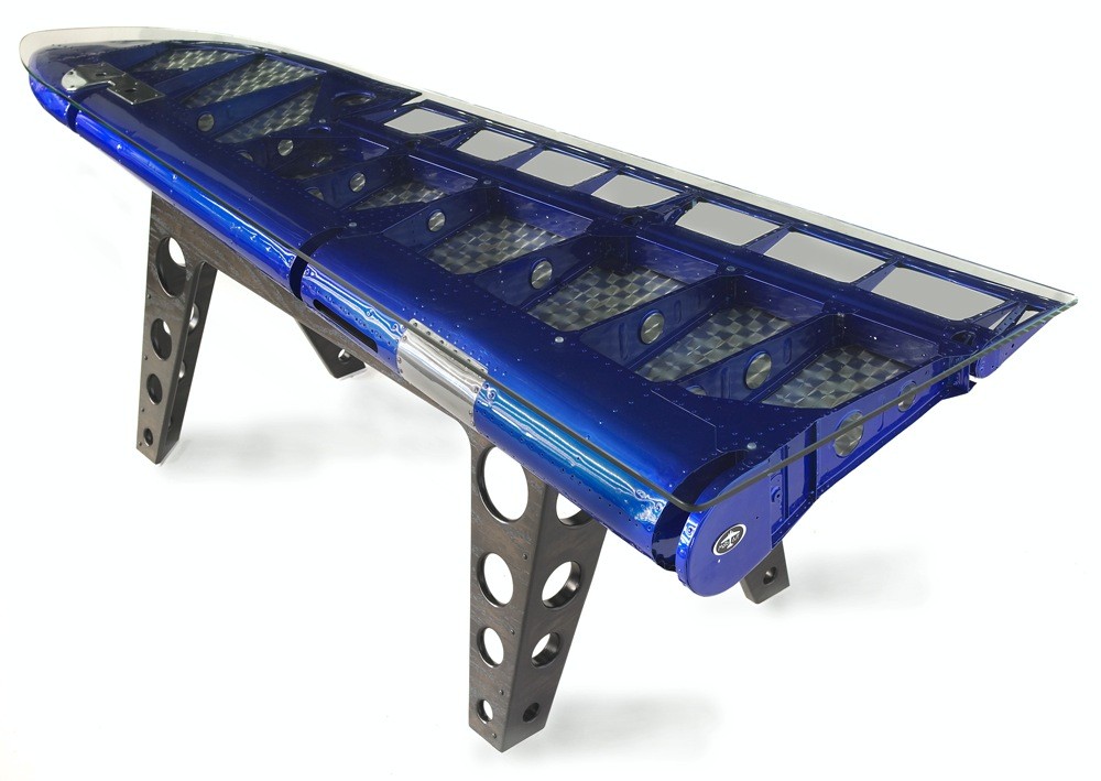 – Konferenčna miza, ki so jo izdelali iz kril biplana iz dvajsetih let, je bila ocenjena na 35.000 ameriških dolarjev.