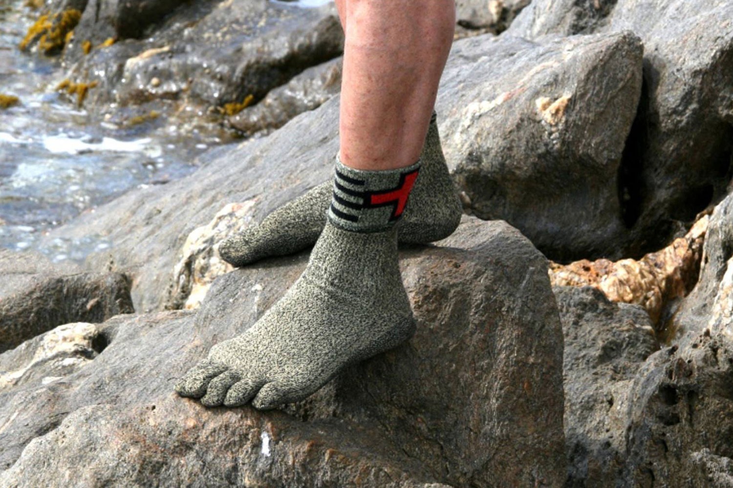 Son resistentes al agua y tienen puntos en la suela para un mejor agarre en superficies resbaladizas como una tabla de surf. Están disponibles como clásico o corto calcetines (para hombres y mujeres), que preferiría buscar en el departamento de calzado que calcetines, porque se pueden considerar como calzado deportivo (sobre todo porque son muy fáciles de poner y quitar). También son aptas para rocas afiladas, en definitiva, cualquier tipo de roca. condiciones desfavorables, a la que está sujeto en su actividad.
