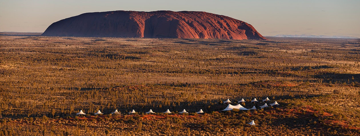 Longitud 131°, que debe su nombre a la longitud del parque, es lujoso complejo, en el que se encuentra 16 carpas o pabellones. Cada una de las tiendas está equipada con muebles de varios diseñadores australianos, una terraza de madera, una chimenea y una gran pared de cristal a través de la cual se puede admirar Uluru. En la zona común del resort Casa de las dunas es un restaurante y salón, donde puedes compartir tus sentimientos con otros invitados mientras tomas una copa. Los precios por noche por persona van desde 940euros Hasta que 3000 euros, dependiendo de cuantas camas tenga la habitación o en qué tienda te alojas. Todas las comidas, bebidas e incluso el transporte al aeropuerto están incluidos en el precio.