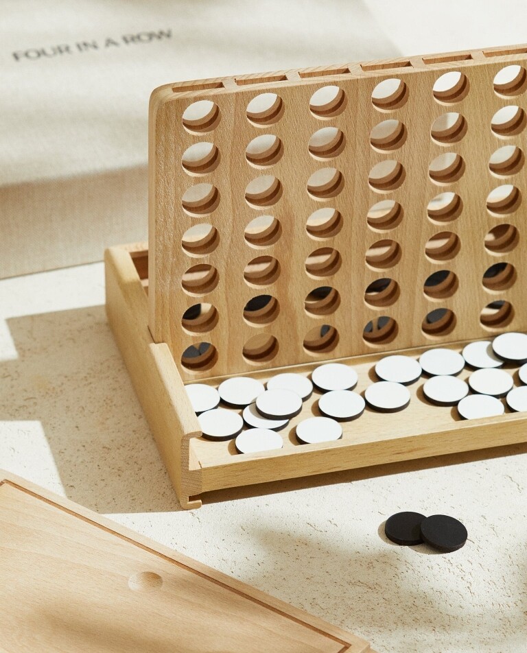 Juego cruzado cruzadotambién existe en una versión más pequeña. Además de las figuras de madera, también contiene una bolsa de algodón para guardar y transportar las piezas. juego de dominó está fabricado en madera de haya en un estuche de lona. El juego de cartas de póquer con motivos florales fue creado en colaboración con la marca española Heraclio Fournier, un fabricante de cartas de fama mundial. Los precios de los juegos de mesa van desde los 39 euros hasta los 219 euros.