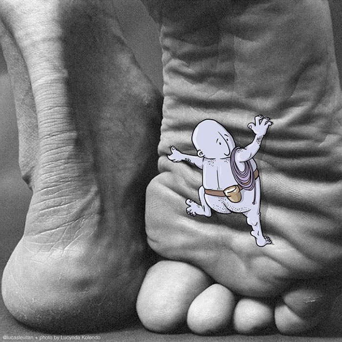 Lucas Levitan, un autoproclamado 'tramposo de la fotografía', es un artista brasileño que mezcla dos mundos. Realidad y caricaturas. Como lienzo para sus ilustraciones digitales, utiliza fotos de desconocidos publicadas en Instagram, a las que añade personajes ilustrados que dan un nuevo significado a las escenas.