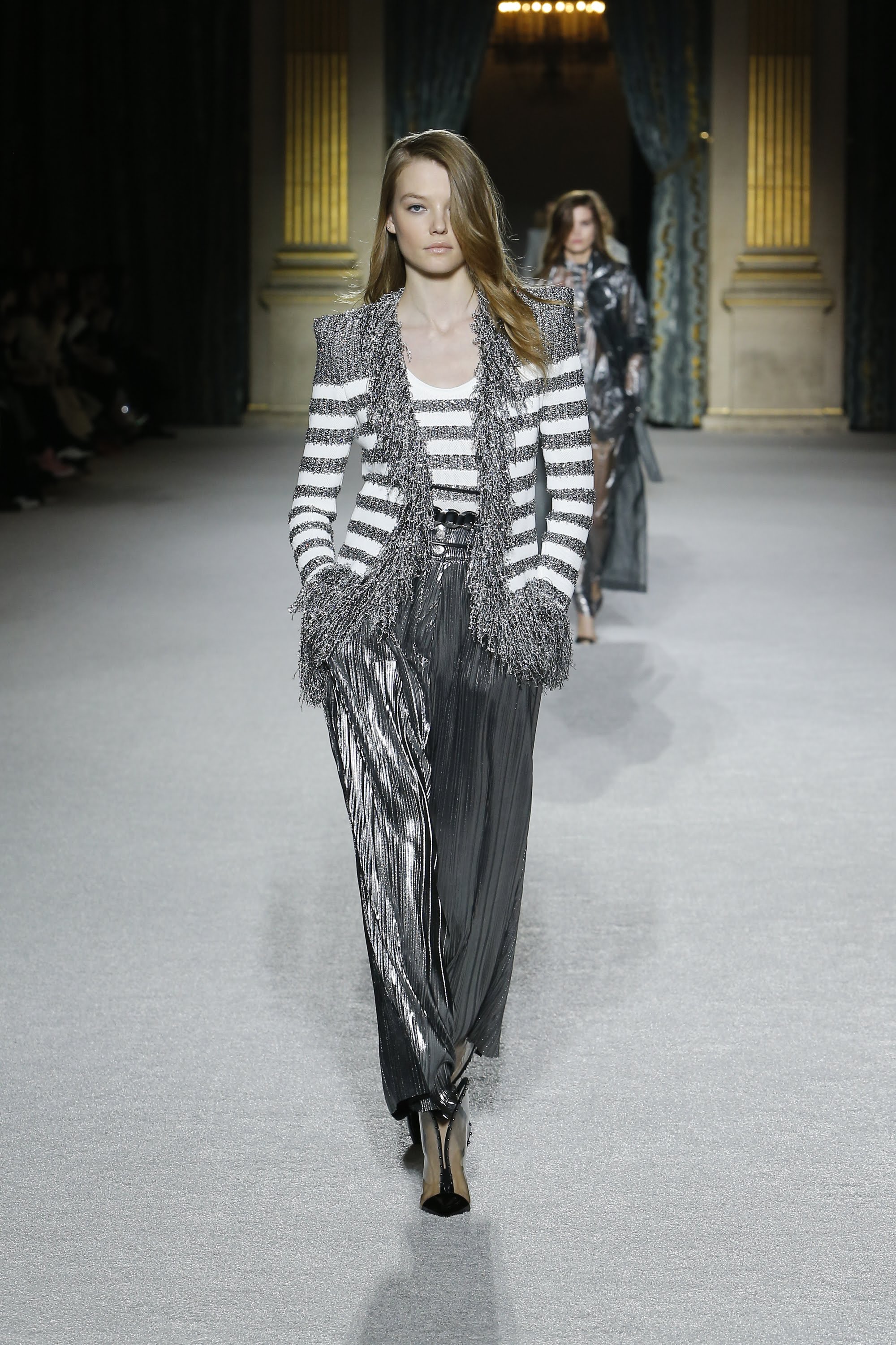 Y, sin embargo, el futuro de la casa de moda sigue estando estrechamente ligado al pasado. Cortes únicos e impresionantes detalles decorativos atestiguan claramente el hecho de que los talleres de Balmain continúan ofreciendo el alto nivel de artesanía por el que han sido reconocidos durante décadas.
