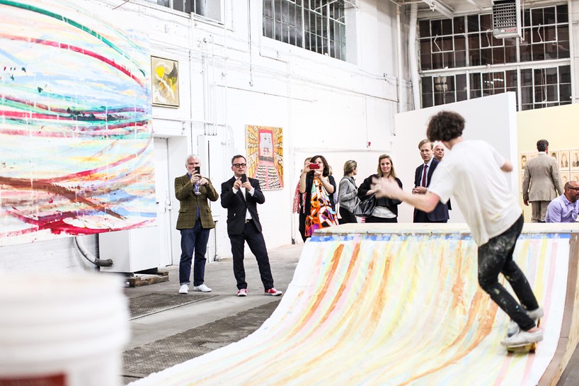 Brooklynski umetnik in skejtar Matt Reilly je v galeriji moderne umetnosti Mana Contemporary priredil pravcati umetniški šov, saj so si obiskovalci lahko v živo ogledali, kako izgleda umetnost na štirih koleščkih. Matt je namreč sredi razstavnega prostora zgradil “half-pipe”, nanj pritrdil slikarska platna in jih umetniško poskejtal.