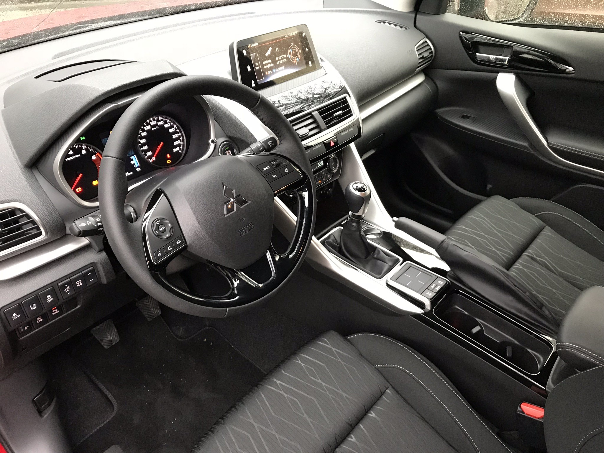 Notranjost Eclipse Crossa je razdeljena na dva dela. Zgornji del ponuja vse potrebne informacije, spodnji del armaturne plošče pa je namenjen upravljanju z vsemi napravami v avtomobilu. Med tehnologijo lahko omenimo novi SDA – Smartphone Link Display Audio, ki se poveže s pametnimi telefoni prek vmesnika Android automático o CarPlay de Apple. Eclipse Cross ima tudi pantalla Head-up, ki posreduje kopico informacij in poskrbi, da je voznik lahko vedno osredotočen na dogajanje na cestišču. K temu pripomore tudi krmilna plošča, s katero je upravljanje z aplikacijami in avtoradiem še poenostavljeno.