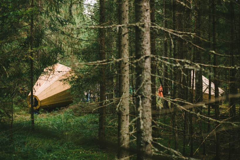 Un grupo de estudiantes de arquitectura de la Academia de Bellas Artes de Estonia instaló tres megáfonos Ruup extra grandes de madera en un pequeño claro en medio de un bosque en el condado de Võru, Estonia. Al fusionar la arquitectura moderna con la naturaleza, la instalación acústica es un lugar de meditación, relajación y actuación, que amplifica los sonidos de la naturaleza, como el canto de los pájaros y el susurro de las hojas.