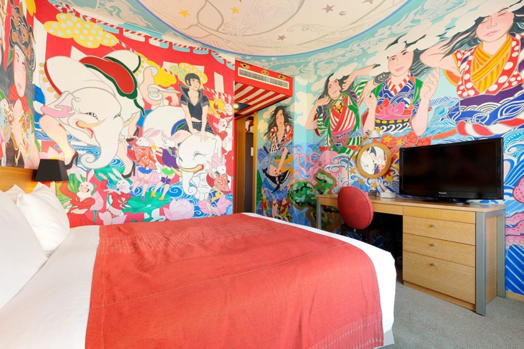 El arte japonés se ha considerado excepcional y único durante siglos. En esta ocasión, lo presentan a su manera pintores japoneses que han plasmado su imaginación en las paredes de una habitación de hotel de Tokio.