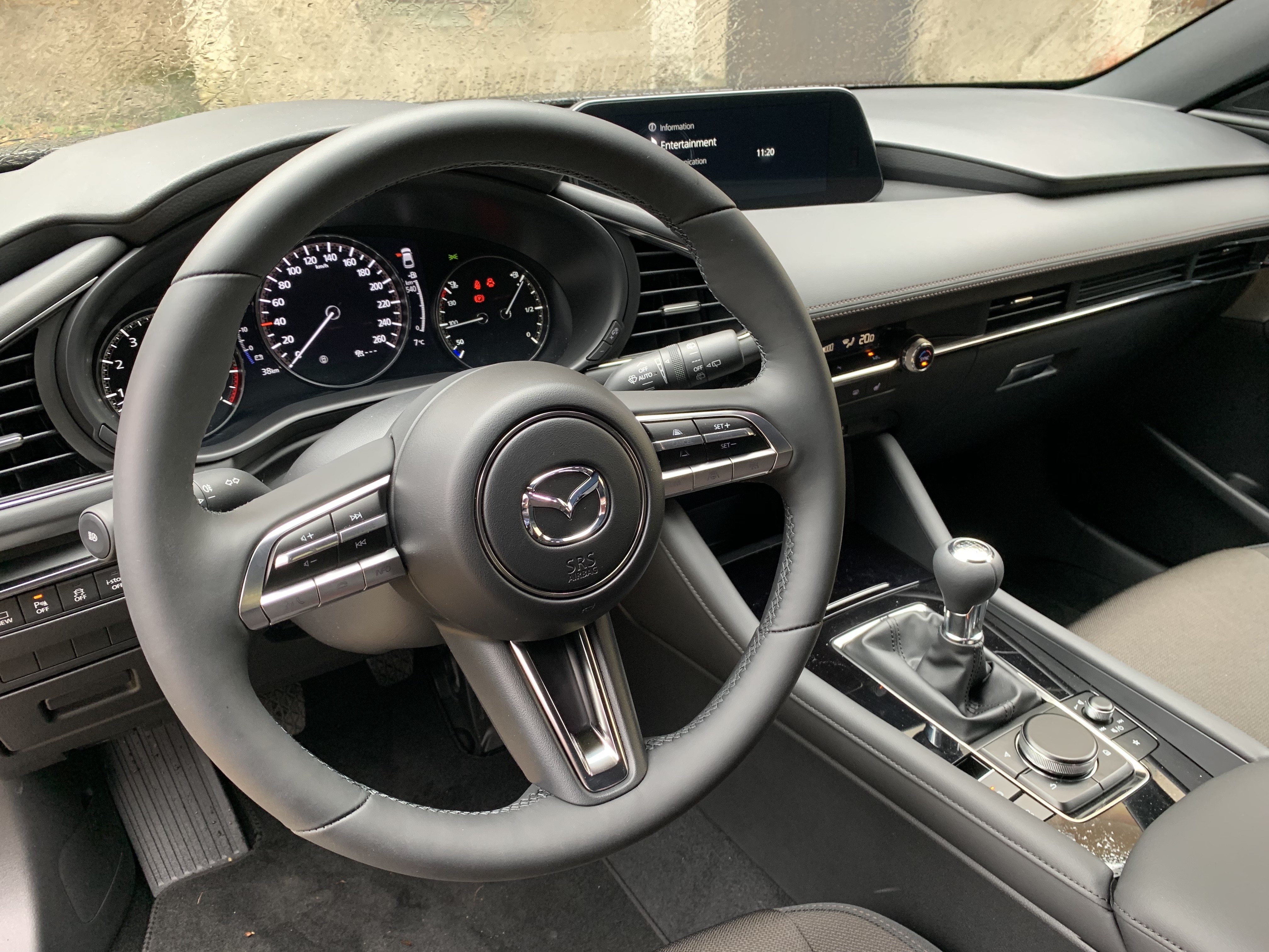 Bistvo nove Mazde3 es en povezavi med voznikom in avtomobilom. Notranjost je osredotočena na človeka, ki so mu posodobili vozni položaj, optimizirali položaj prestavne ročice in s filozofijo, ‘manj je več’, izboljšali preglednost v potniški kabini. Že ob prvem stiku z novo Mazdo3 je moč opaziti višjo kakovost uporabljenih materialov in visoko stopnjo končne dodelave. Voznikov prostor je prečiščen in ponuja pregledno površino, kjer je minimalno potrebno število gumbov in stikal. Tako se lažje orientiramo, pozornost pa nam ne uhaja z dogajanja na cestišču. Na voljo imamo 8,8 pulgadas informacijsko-zabavni zaslon, 7,0 pulgadas digitalni zaslon med merilniki in projekcijski head-up zaslon. Napredna navigacija je zdaj še natančnejša, izboljšano je glasovno prepoznavanje, Apple Carplay in Android Auto, pa sta že del serijske opreme.