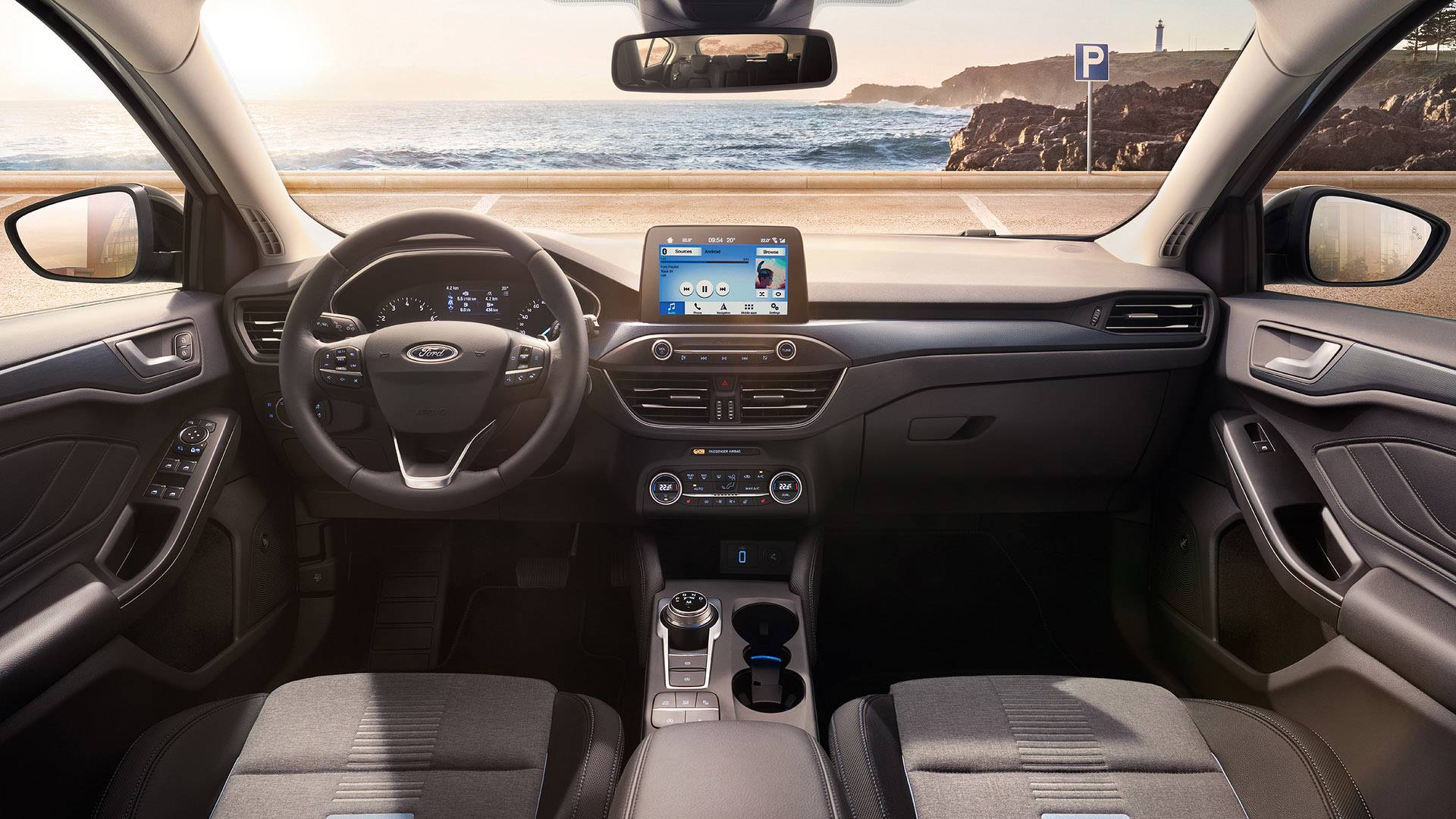 Cabe mencionar como novedad encabezar pantalla, que apareció en los Focus y en general en los Ford en suelo europeo por primera vez. También hay un asistente de estacionamiento, un sistema de advertencia de colisión y un sistema de reconocimiento de peatones y ciclistas. De los sistemas ya conocidos, tenemos disponible aviso de vehículos en ángulo muerto, seguimiento de tráfico cruzado por detrás y giro del volante para evitar una colisión. A través de la aplicación FordPass Connect los usuarios podrán ver las funciones de Focus a través de teléfonos inteligentes o tabletas, bloquear y desbloquear el automóvil e incluso encenderlo de forma remota.