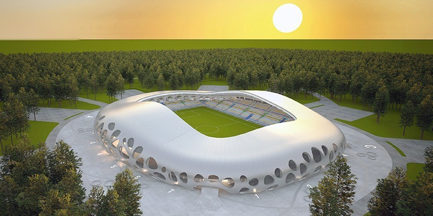 En la oficina de Eslovenia arquitectos de oficina, que conducen Rok Omán y Špela Videčnik, puede presumir de construcción recién terminada estadio de fútbol en la ciudad bielorrusa de Borisov. La inauguración marcó un importante aniversario de la ciudad, y el estadio se convertiría en un símbolo visual de la ciudad. Durante el diseño, los arquitectos intentaron adaptarse al paisaje circundante e interferir lo menos posible con él, mientras que al mismo tiempo lograron satisfacer las necesidades de 13.000 asientos, áreas públicas masivas y numerosos estacionamientos requeridos por la UEFA. Los alrededores del edificio se disponen en un agradable paseo marítimo, y los estacionamientos se ubican en el bosque circundante.
