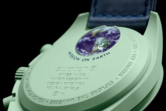 Ninguna de las copias está limitada o numerada, por lo que los relojes no son tan exclusivos. Sin embargo, debido a la demanda y la exageración, se venderán de inmediato. Pero vayamos al producto. Al igual que el Speedmaster, el reloj tiene 42 mm de diámetro y 13 mm de grosor, y MoonSwatch utiliza el mismo material de vidrio para la caja. La legibilidad de la pantalla del cronógrafo también es notablemente similar a la del Speedmaster, lo que es aún más impresionante dado que todos los relojes se fabrican en las fábricas de Swatch. En la parte posterior de cada caja hay una imagen del planeta individual. Estos están montados sobre la batería y provienen directamente de los laboratorios de la NASA.