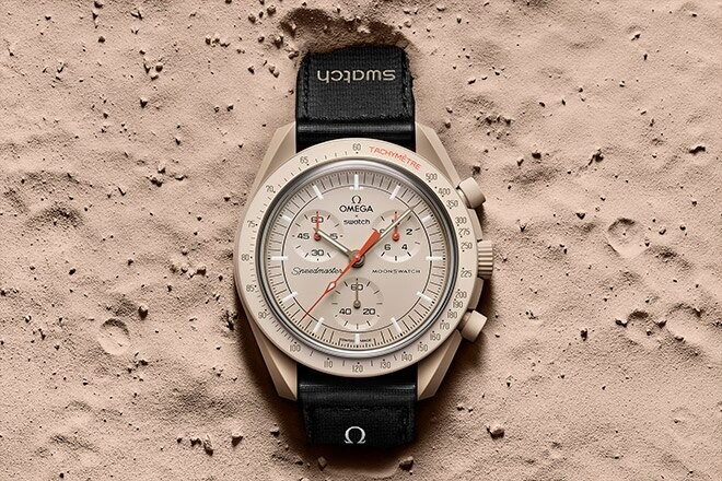 Swatch utiliza un material extremadamente innovador: la biocerámica, una mezcla de cerámica y plástico de producción ecológica. Y el nivel de precios ofrece la oportunidad de lograr que un público más amplio se interese en un reloj de primera línea. "Esa fue la base sobre la que pensamos juntos", dice Hayek. “Cuando a los creadores se les ocurrió la idea del Swatch Speedmaster, hicieron un corte de prueba en el material biocerámico para ver si tenía sentido que el Speedmaster se viera así. La inspiración fue nuestro sistema solar. El objetivo es también la asequibilidad tradicional de Swach.