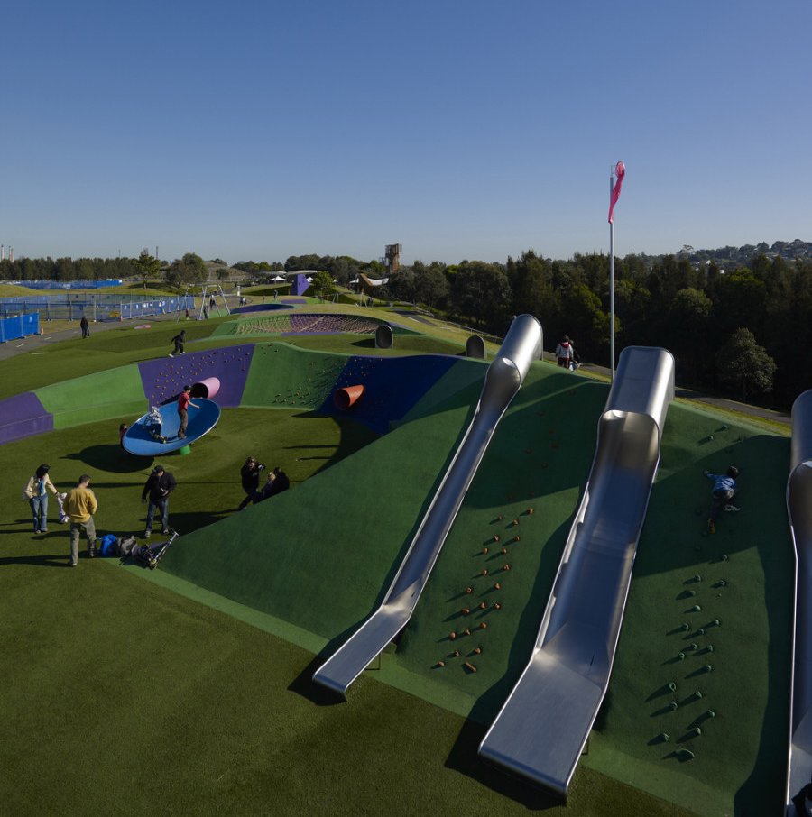 Še manjkrat pa slišimo, da se takšno igrišče razprostira na več kot 20 tisočih kvadratnih metrih površine. Blaxland Riverside Park so odprli letos poleti v bližini avstralskega mesta Sydney. Načrt zanj so naredili pri oblikovalski hiši JMD Design, kateri so imeli v mislih odprt in svoboden prostor brez meja, kjer bi najmlajši s tekom in igranjem na zanimivih rekvizitih porabili odvečno energijo.