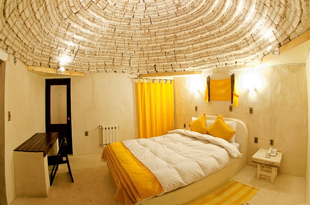 hotel de sal palacio de sal no es un espejismo como parece el paisaje de otro mundo Salar de Uyun (Bolivia), donde se encuentra. es un verdadero y el hotel de sal mas grande del mundo hecho de ladrillos hechos de sal, un bien que no escasea por estos lares ya que literalmente yace en el suelo, por lo que es lógico que fuera utilizado como material de construcción. También están hechos de cristales blancos. paredes, techos, esculturas, mesas, sillas, camas y otros muebles. El hotel tiene con 30 habitaciones, que se asemejan a iglús, excepto que en lugar de cubitos de hielo o cubitos de nieve hecho de cubos de sal.
