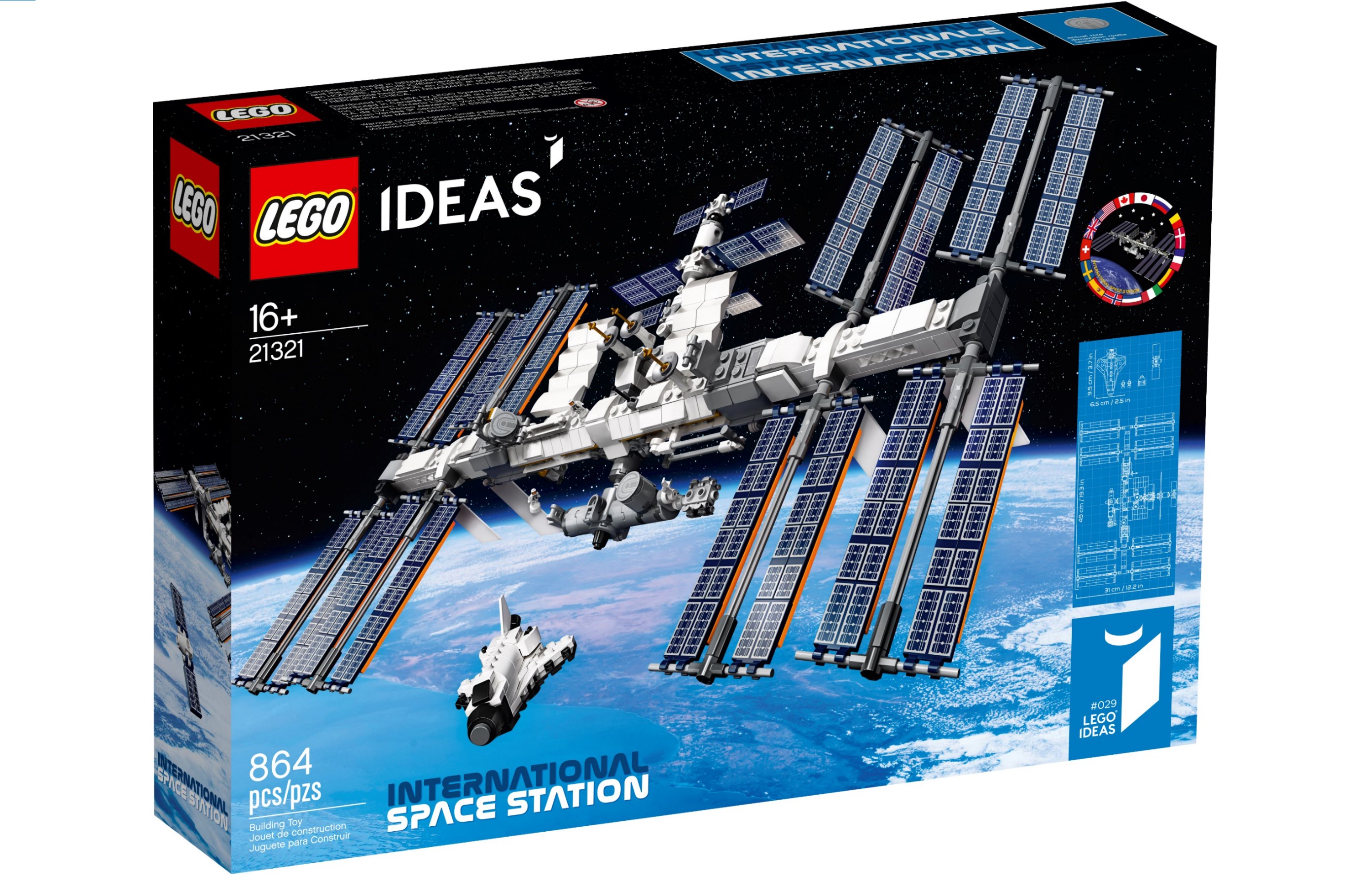 Este juego realista, que mide 20 cm de alto, 31 cm de largo y 49 cm de ancho, cuenta con un brazo robótico Canadarm2 montado, dos interruptores giratorios y ocho paneles solares ajustables. Con ello quieren mostrar la compleja construcción de una estación espacial real orbitando sobre la Tierra. 16 veces al día. Contiene 864 piezas e incluye un cohete espacial de la NASA con tres nave espacial de carga en miniatura y dos Microfiguras de astronautas. También se adjunta folleto de instrucciones ilustrado en 148 páginas, completo datos interesantes e información sobre la Estación Espacial Internacional y fan de LEGO, Christoph Ruge, quien creó el diseño original del set.