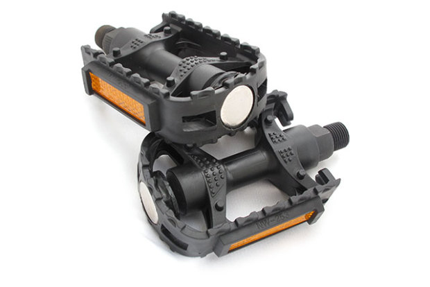 Parque de pedales son innovadores imán de pedal de bicicleta, que permiten que la bicicleta permanezca en su lugar si solo la inclinas por algo metálico, ya que tienen imanes lo suficientemente fuertes como para pegar la rueda a la superficie.