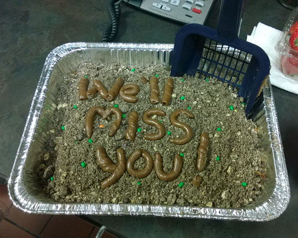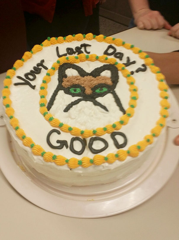 Las despedidas siempre son duras. A veces, las emociones son difíciles de expresar con palabras, por lo que las personas usan diferentes formas de expresarlas. Cuando salimos del trabajo, los compañeros suelen darnos un regalo de despedida además de palabras de aliento. A menudo es un pastel. Si alguna vez te encuentras en una situación en la que no sabes qué regalarle a un colega cuando decide asumir nuevos desafíos, deja que esta galería sea tu inspiración. Solo esperamos que este tipo tenga sentido del humor.