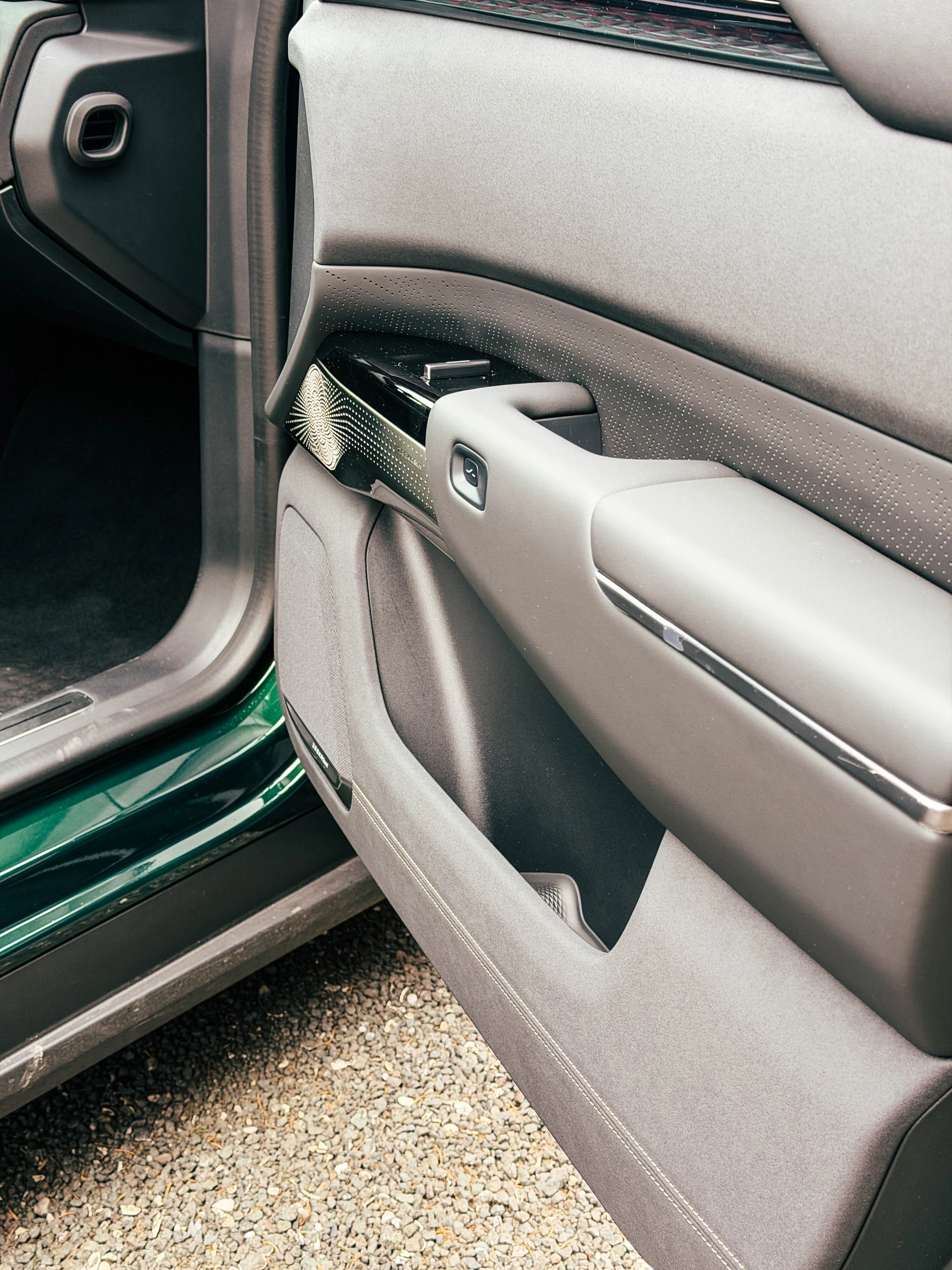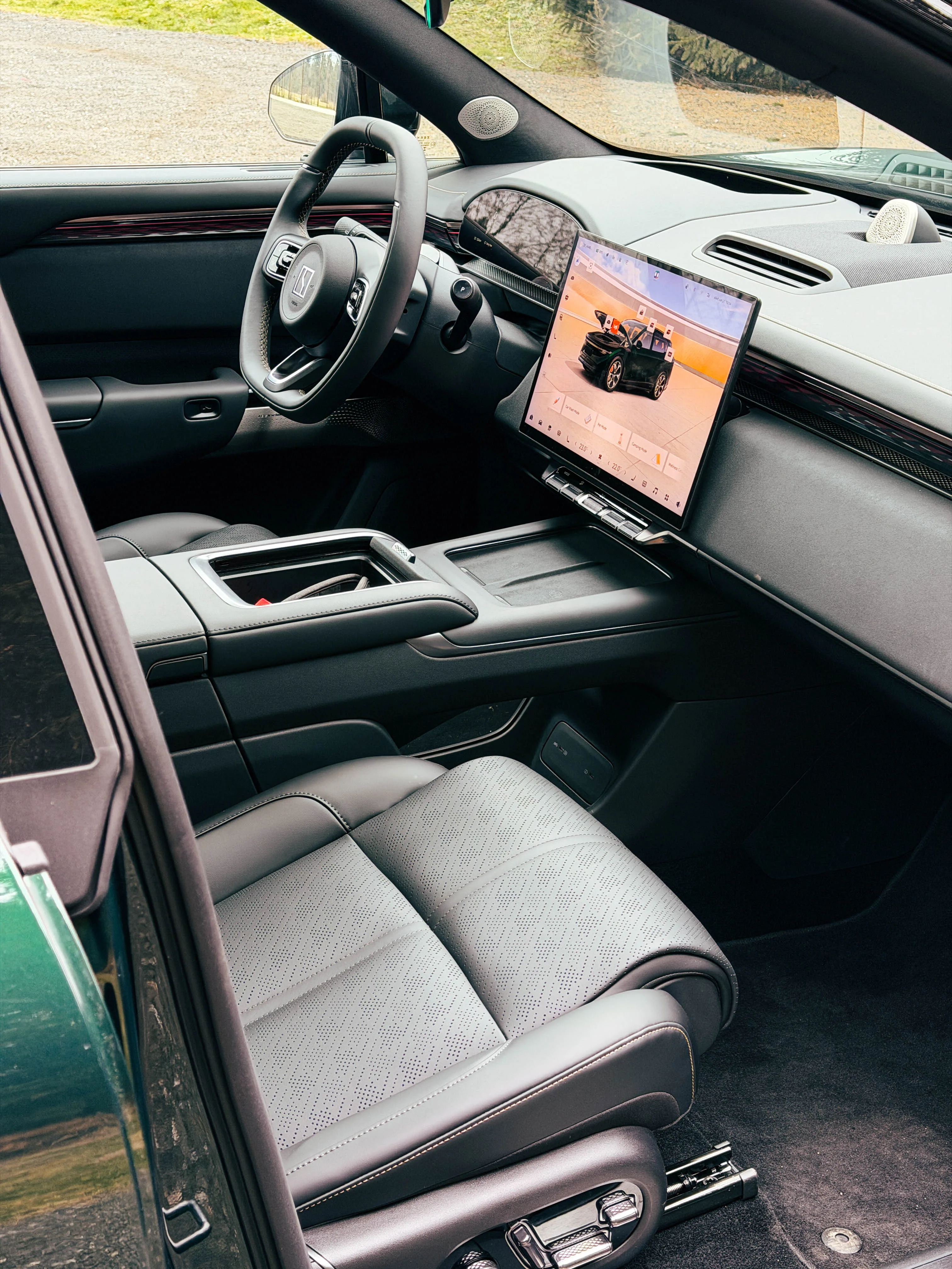 Al abrir la puerta, o mejor dicho, al abrirse sola (¿para qué molestarse en tirar de la manija en 2025?), se entra en un mundo que rezuma prestigio. El interior es minimalista, pero no está "vacío como un Tesla". Hay botones para el modo de conducción, el audio, una pantalla de 16 pulgadas que funciona más rápido que tu último smartphone y materiales que esperarías de un coche de seis cifras. Este coche cuesta el doble que... Modelo Y de Tesla Rendimiento, pero costes idénticos.