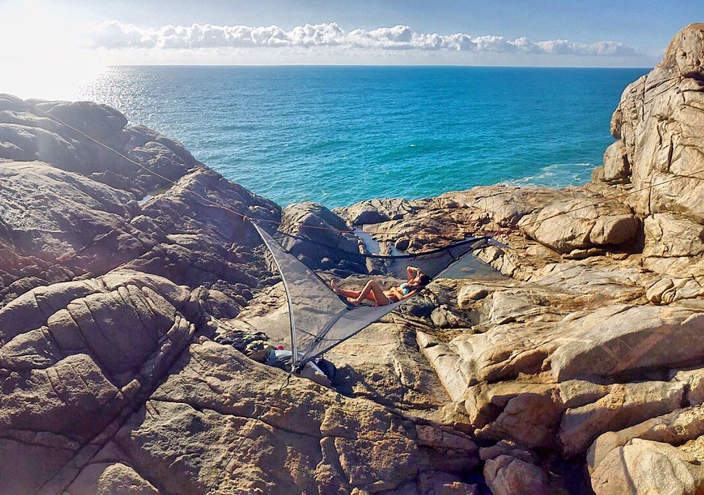 Ligera, versátil y plegable, la Tentsile Trillium es una hamaca gigante y una superficie de descanso ideal que puede acomodar hasta tres personas a la vez (capacidad de carga de 400 kg). Reforzados con más de 20 metros de cinturón de seguridad, pasadores y tela extremadamente resistente, garantizan total placer, seguridad y la vista más hermosa del bosque. Pesa solo 6,5 kilogramos y se pliega de las dimensiones de 4,4 x 4,4 x 4,4 metros a 46 x 23 x 23 centímetros de bolsillo.