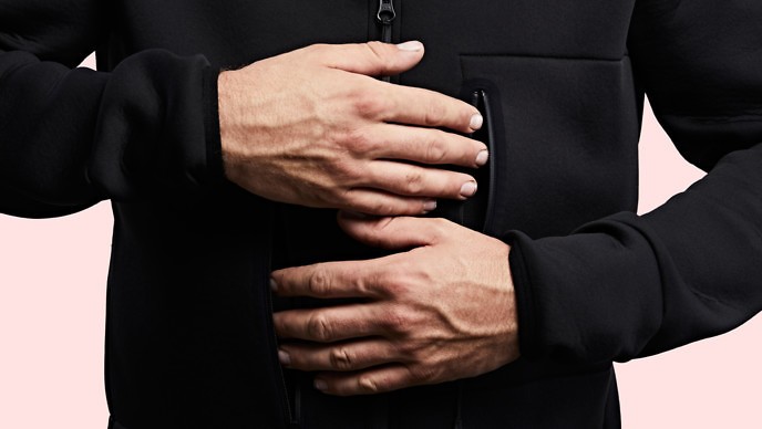 también los bolsillos de la chaqueta están diseñados para contribuir a la relajación – en la parte delantera de la chaqueta hay dos bolsillos grandes, que se instalan a diferentes alturas. Esto se debe a que mantienen tus manos en una posición cómoda incluso si te quedas dormido. La sensación es tan agradable como un abrazo. Los bolsillos son profundos, ya que llegan directamente a la espalda, pero también puedes guardar artículos de bolsillo en ellos, que estará protegido por cremalleras impermeables.
